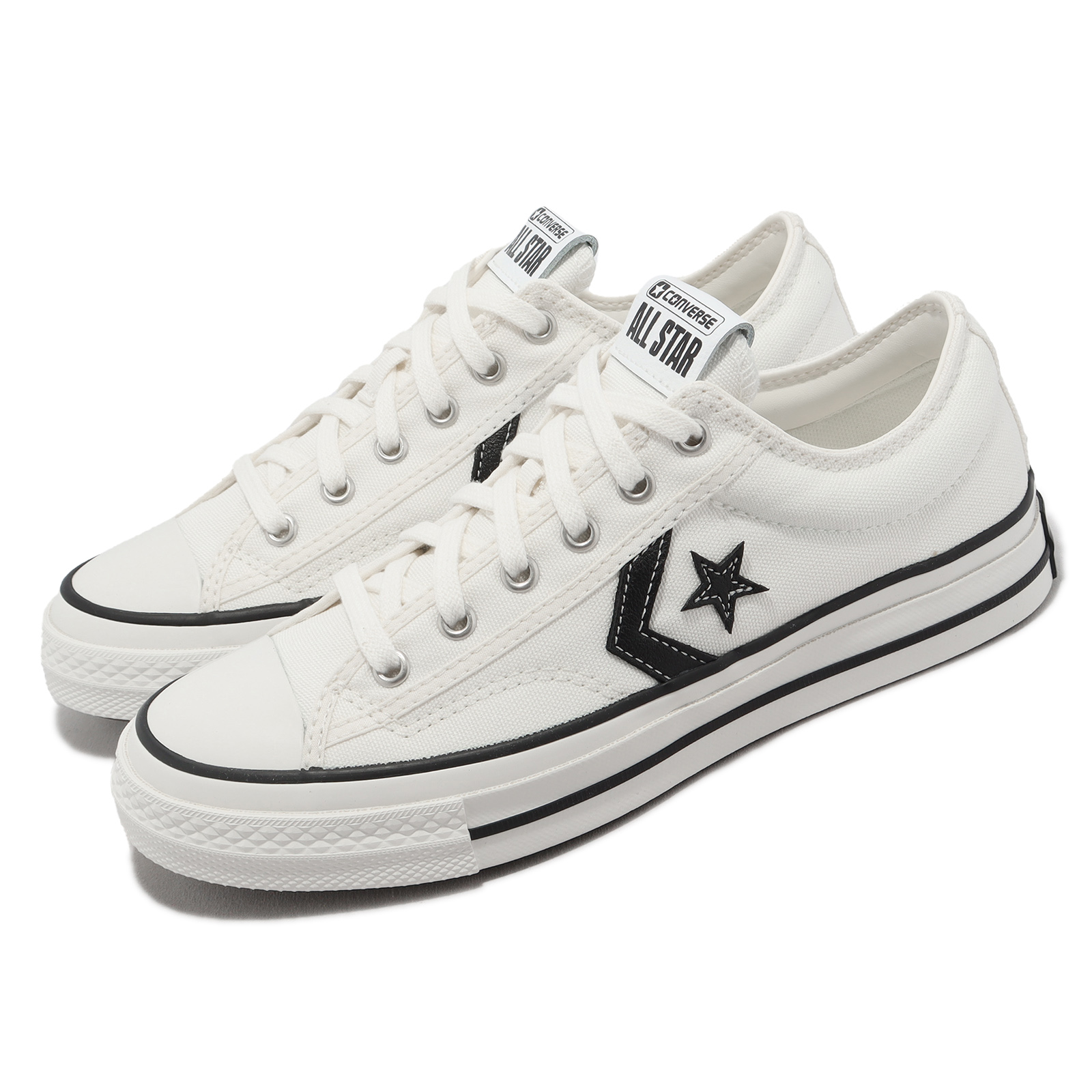 品牌: CONVERSE型號: A01608C品名: Star Player 76 Low版型: 版型正常* 鞋面使用經典的帆布材質設計,筆挺的鞋型在穿搭時不易塌陷,搭配復古經典 Logo,可與服裝搭配出色造型。* 鞋墊部分增加厚實度、柔軟度,有效提升雙足的舒適性。* 橡膠大底提供良好抓地耐磨效果。