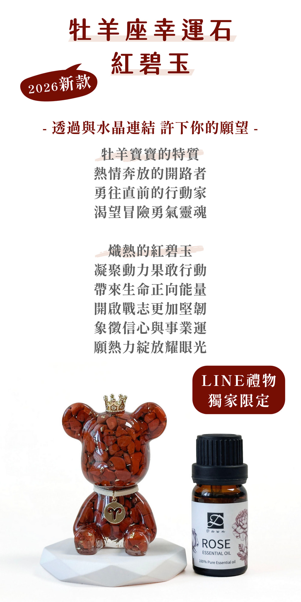 ◿ 商品內容:星座水晶熊1隻+擴香石1個+玫瑰精油1瓶