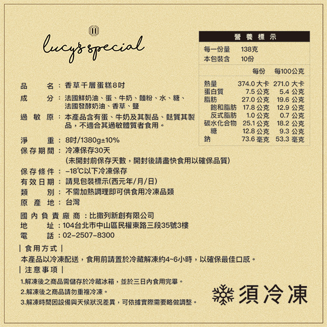 1.商品組合/規格:【LS手作甜點】香草千層蛋糕(8吋)