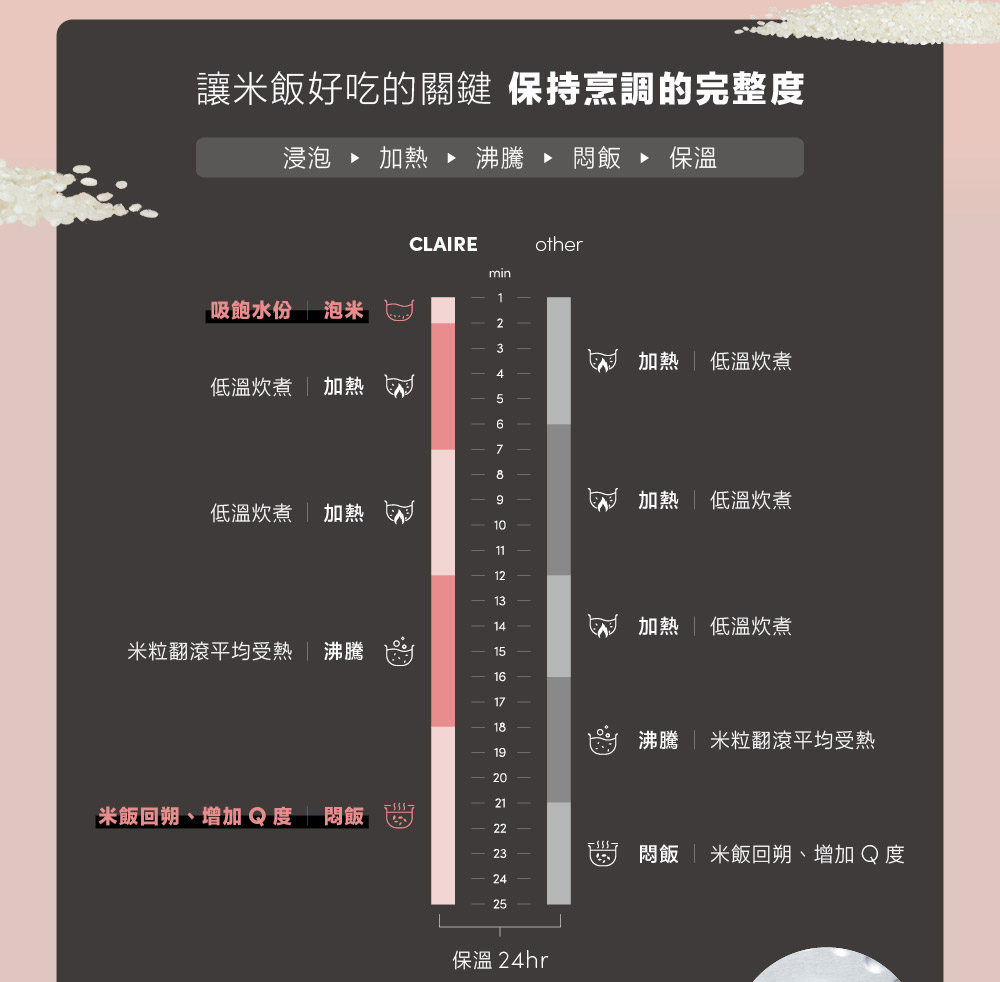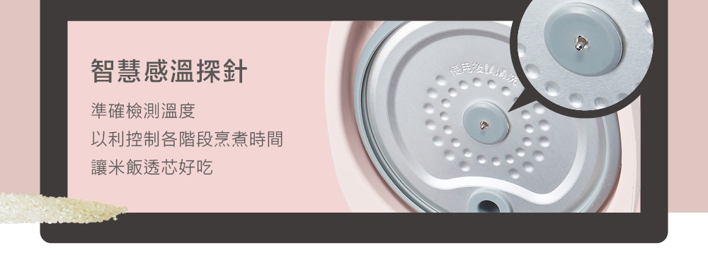 ◆25分快速出飯,專為台灣米而生◆1.8mm厚釜內鍋,米粒Q透分明◆智慧感溫,控制各階段烹煮時間◆不沾塗層清潔好方便◆24小時預約,即刻享用不必等◆可拆式內蓋清洗更便利