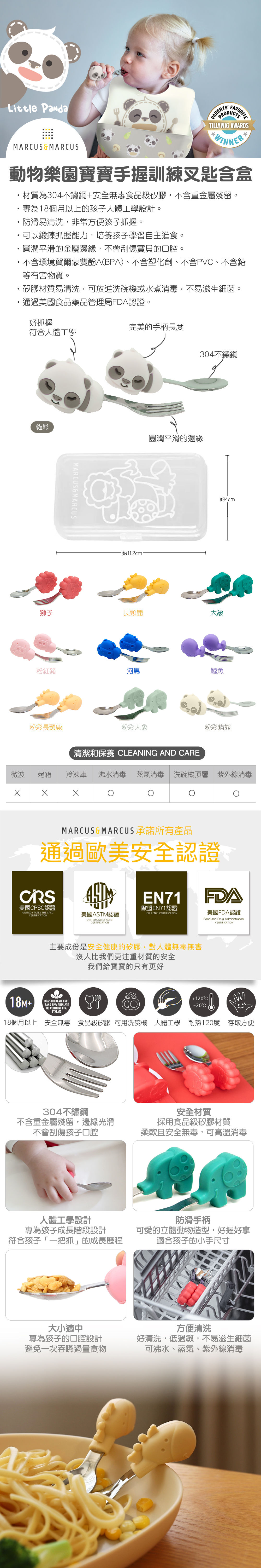 【MARCUS&MARCUS】動物樂園寶寶手握訓練叉匙含盒(灰貓熊) | NearMe | 線上送禮平台『獨家支援 收禮者改選禮物』