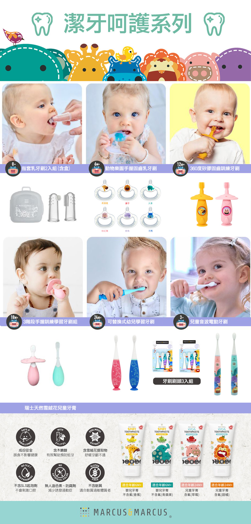 名稱:MARCUS&MARCUS 動物樂園手握固齒乳牙刷
