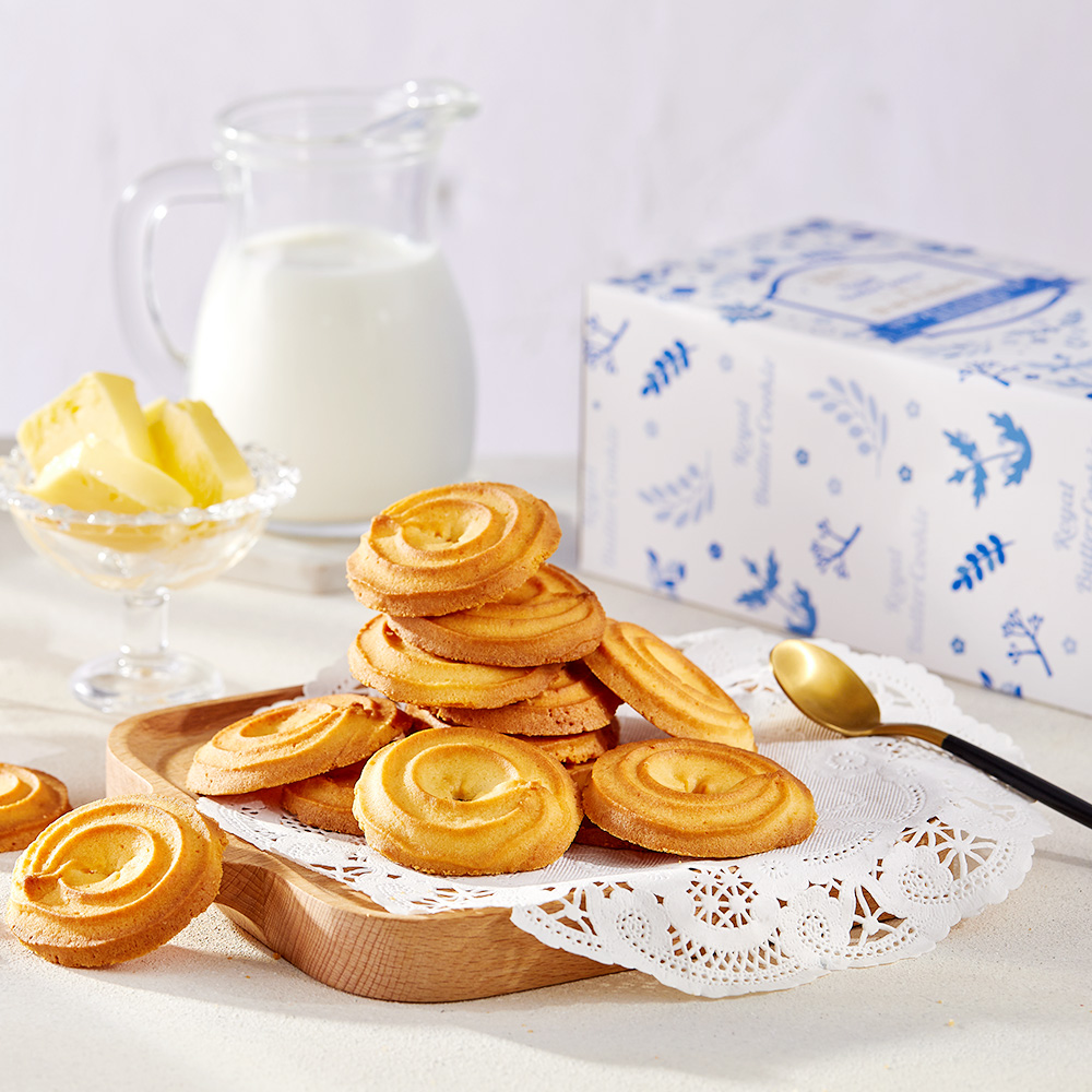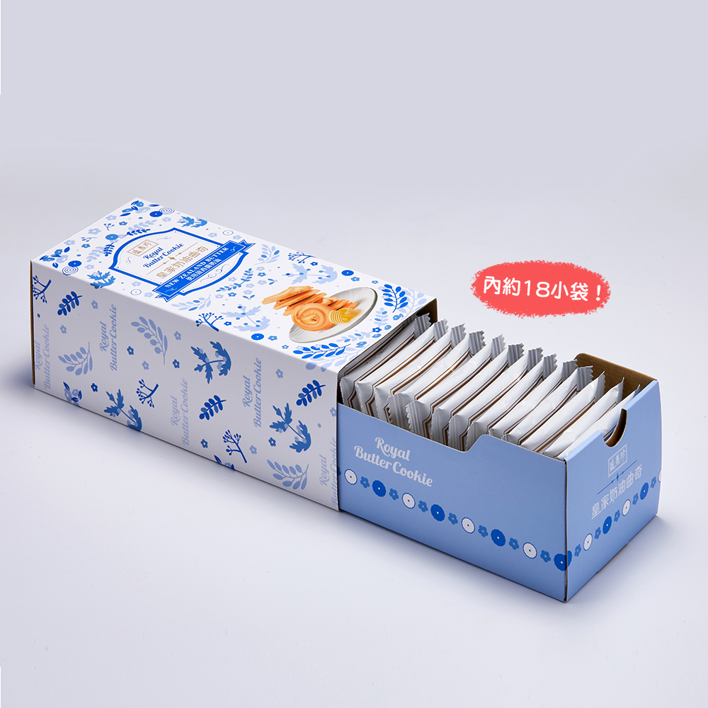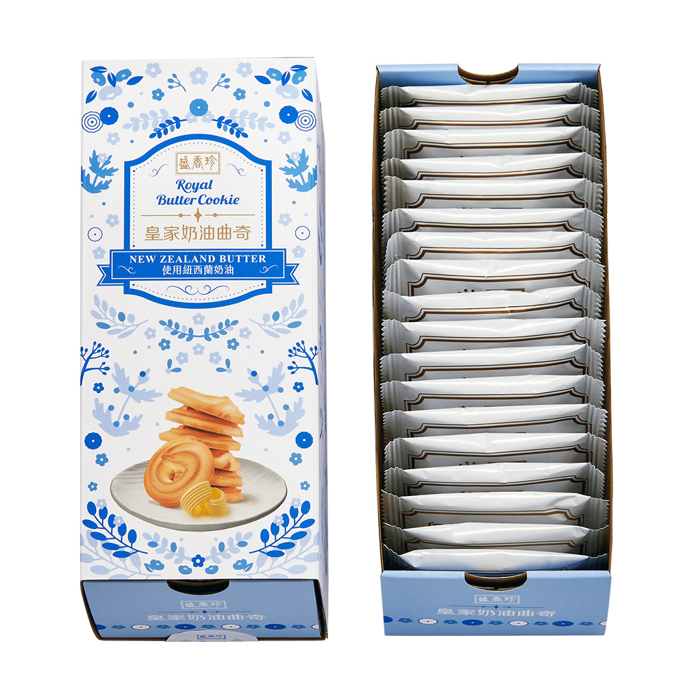 盛香珍 皇家奶油曲奇110g/盒★網路獨家販售★餅乾內餡皆選用天然食材入料★精選高級進口奶油,香氣逼人,每口都有濃濃的奶香,入口即化★外盒採青花瓷的色彩元素,白藍兩色的單純色調搭配簡易的花卉圖騰展現了清新感。★精緻獨立的立體抽屜盒,兼具美觀實用與環保★皇家奶油口味,內袋有新/舊包裝交替,但不影響其美味,請盡情享用。★完美滋味,讓人一口接一口停不了手★奶蛋素者可食用※新舊包裝交替期間,不影響風味口感!!【商品規格】◎品牌: 盛香珍-皇家奶油曲奇-◎商品重(容)量:110g/盒◎內容物名稱(成分):麵粉、奶油、蔗糖、雞蛋、乳粉、植物油 (棕櫚油、大豆油)、食鹽、膨脹劑(碳酸氫銨、碳酸氫鈉)、大豆卵磷脂◎食品添加物名稱:請參考內容物成份◎過敏原:本產品含有麩質之穀物(麵粉)、蛋(雞蛋)、牛乳(奶油、乳粉)、大豆(大豆卵磷脂)◎營養標示: 每100公克-熱量556大卡/蛋白質7.0公克/脂肪33.1公克/飽和脂肪22.8公克/反式脂肪1.1公克/碳水化合物57.6公克/糖20.9公克/鈉209毫克◎是否含肉品:否◎保存期限:12個月◎以消費者收受日算起,至少距有效日期前_日以上:保存期限的1/4