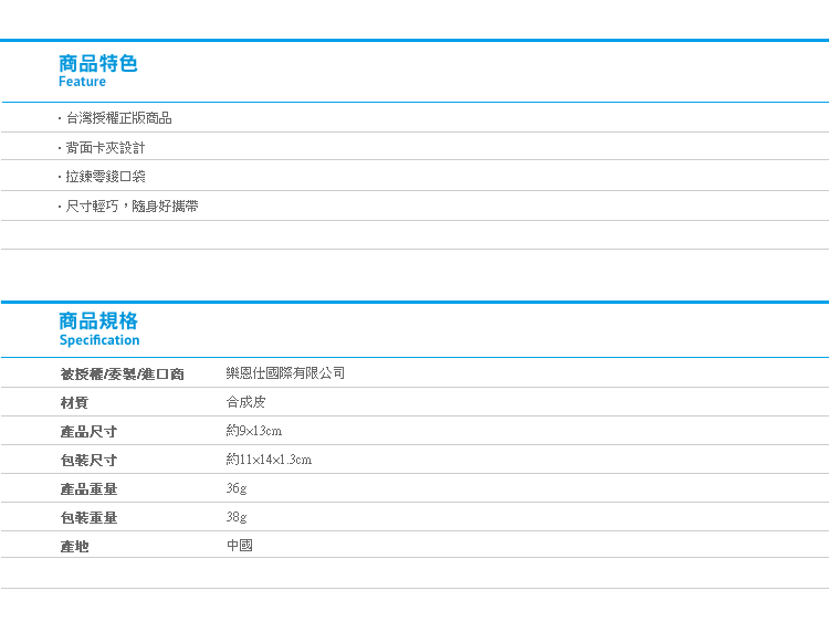 拉鍊零錢口袋,開闔方便