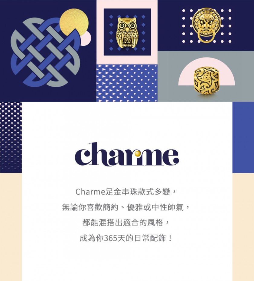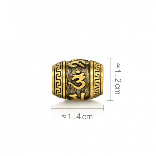 足金串珠以佛教轉經筒為設計藍圖,結合酷黑黃金工藝,造型立體分明。經筒表面刻有大明咒六字真言「唵嘛呢叭咪吽」,祈求平安護身、淨化俗世煩惱。