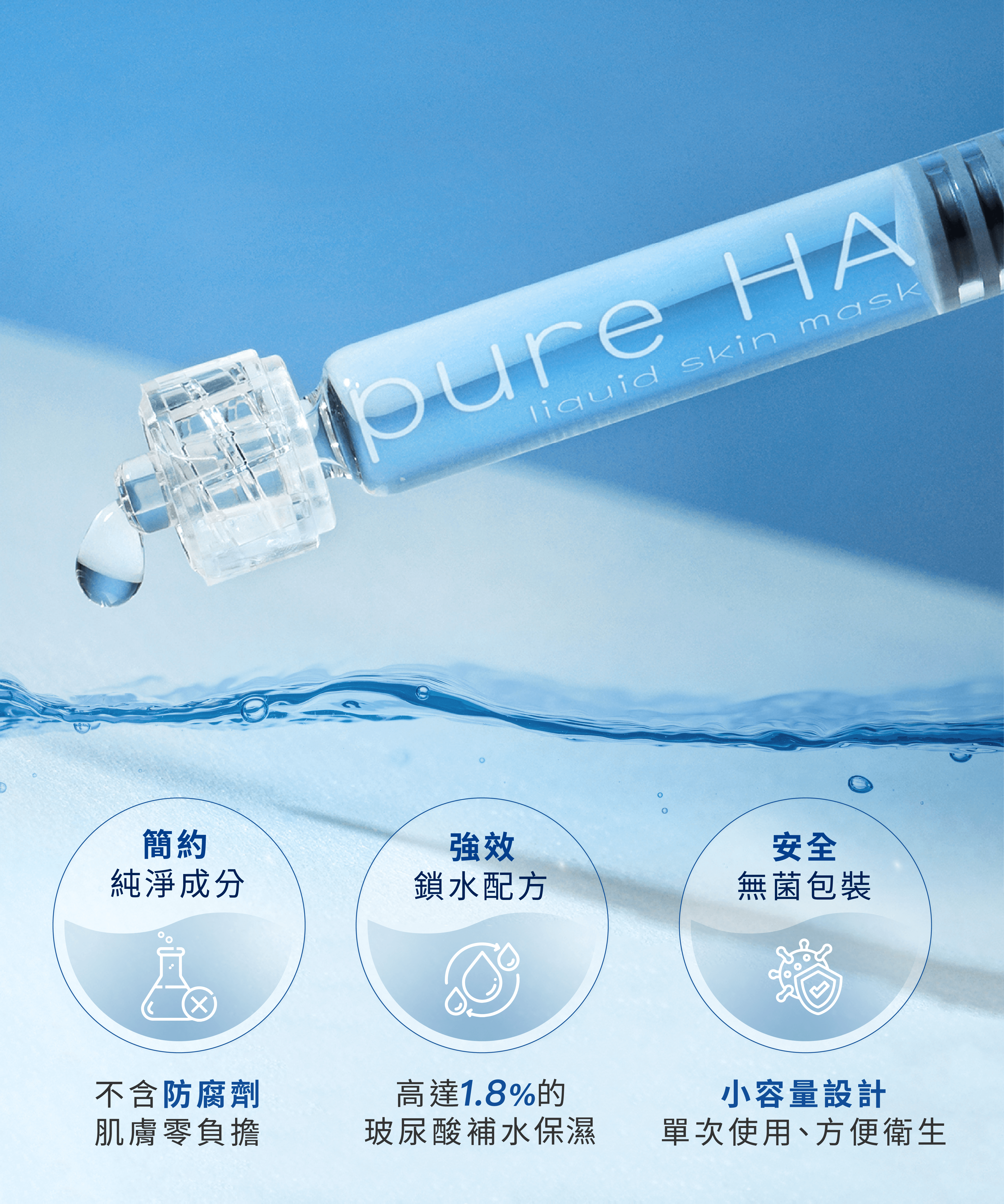 「Croma克洛瑪 天使之鑰純淨玻尿酸」奧地利原裝進口,獨創高濃縮液體面膜,採用超簡約配方,高含 1.8% 的玻尿酸,適合急救保養,有效修護乾燥肌,賦活肌膚,保濕鎖水,讓肌膚由内而外散發出自然魅力! 因無酒精、無香料、無色素,無防腐劑(采用真空包裝),且成分非常單純,所以嬌嫩肌也能安心使用。使用程序每週使用1-2 次。將產品均勻塗抹於臉部,約15 分鐘後用溫水清潔。