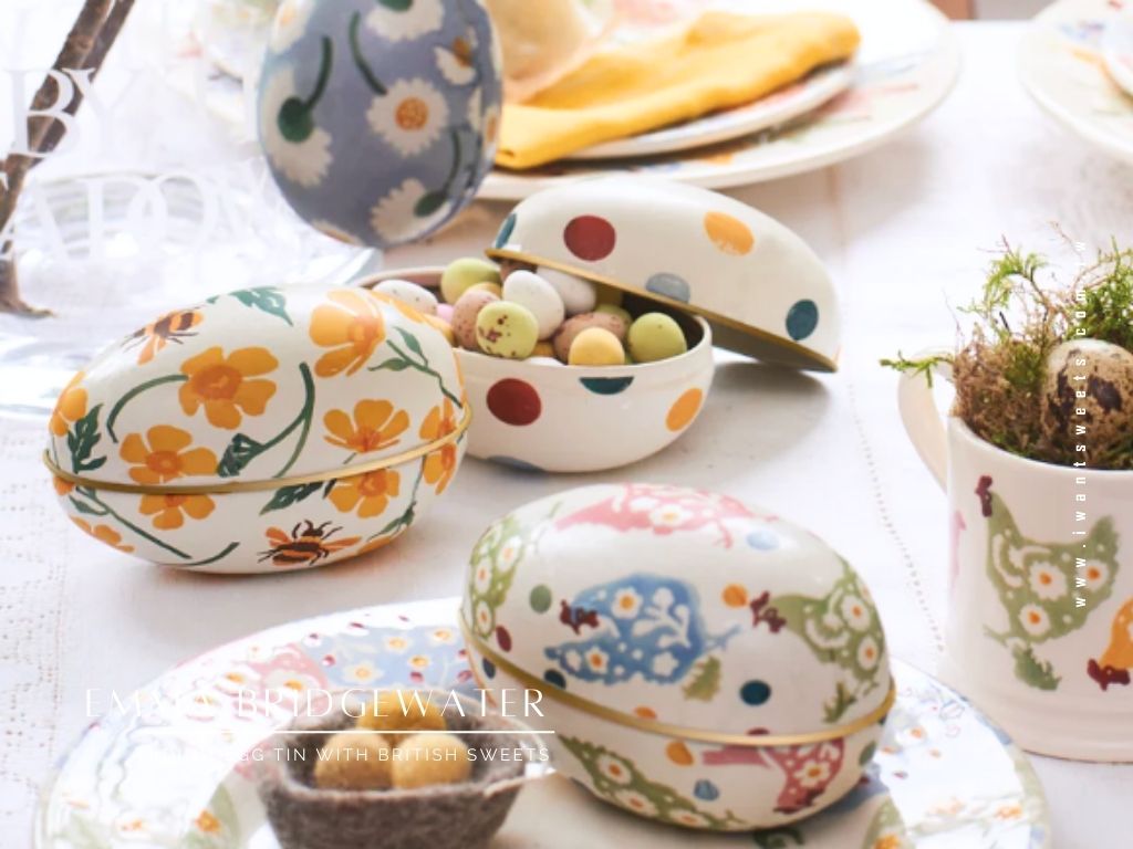 名 稱:Emma新鄉村大彩蛋糖果禮盒 - 單款入 | Emma Bridgewater Medium Egg Tin with British Sweets