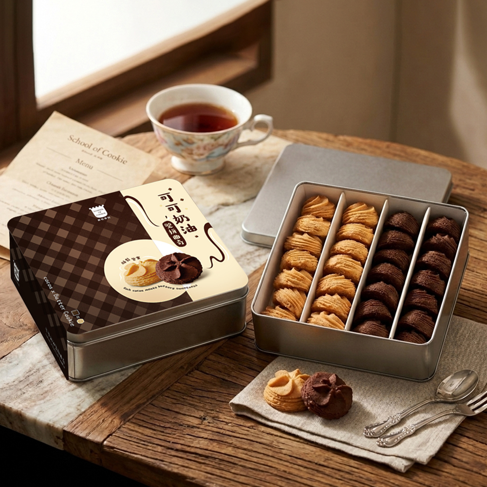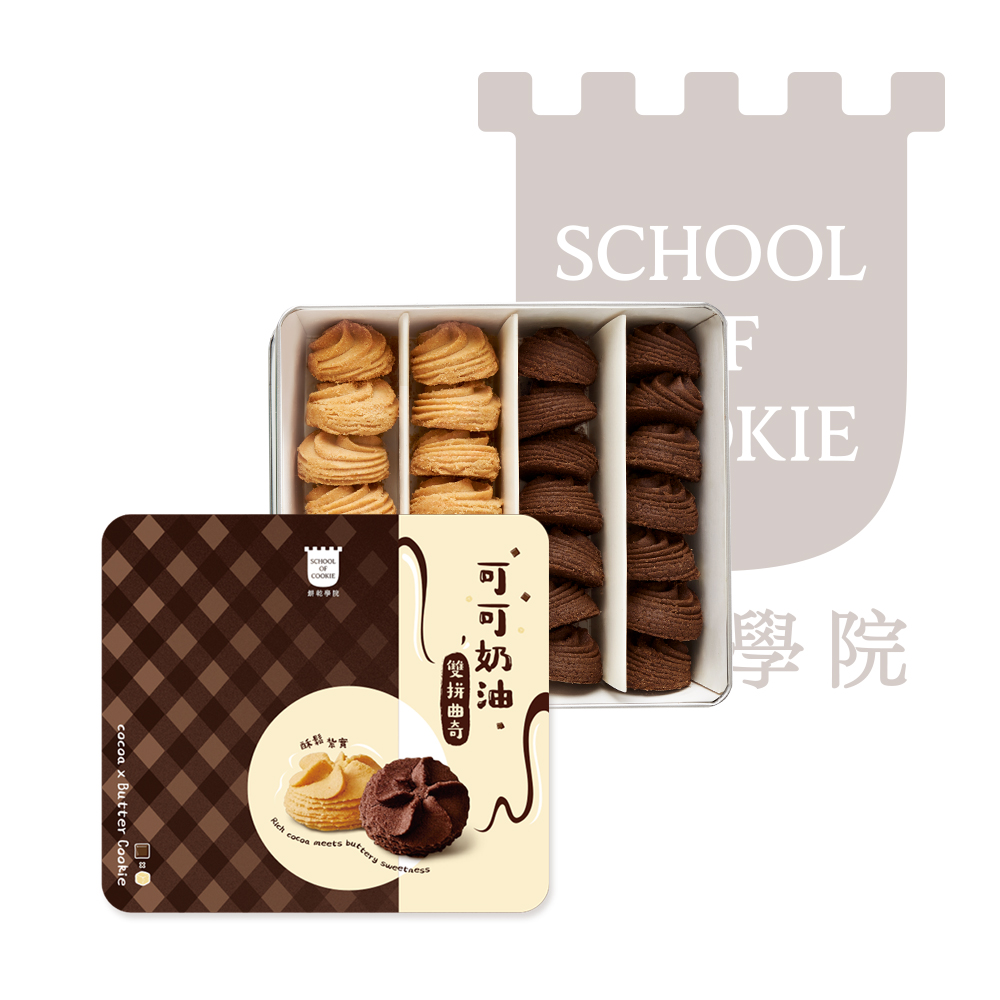 【台灣優格餅乾學院】精緻曲奇餅乾鐵盒│可可x奶油雙拼曲奇鐵盒 220g