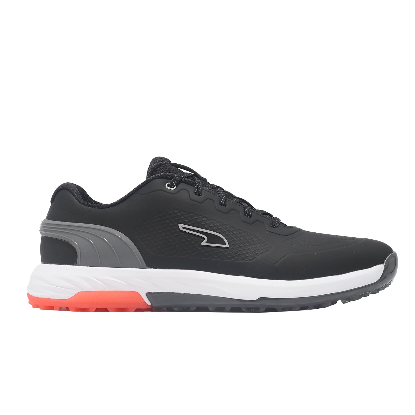* 大底使用 高硬度、耐磨 TPU 材質並以不同形狀的突起顆粒做多重方向狀以幫助在不規則地形上的抓地力;特定區域的特殊溝槽設計使揮桿時更順暢及提升舒適性。