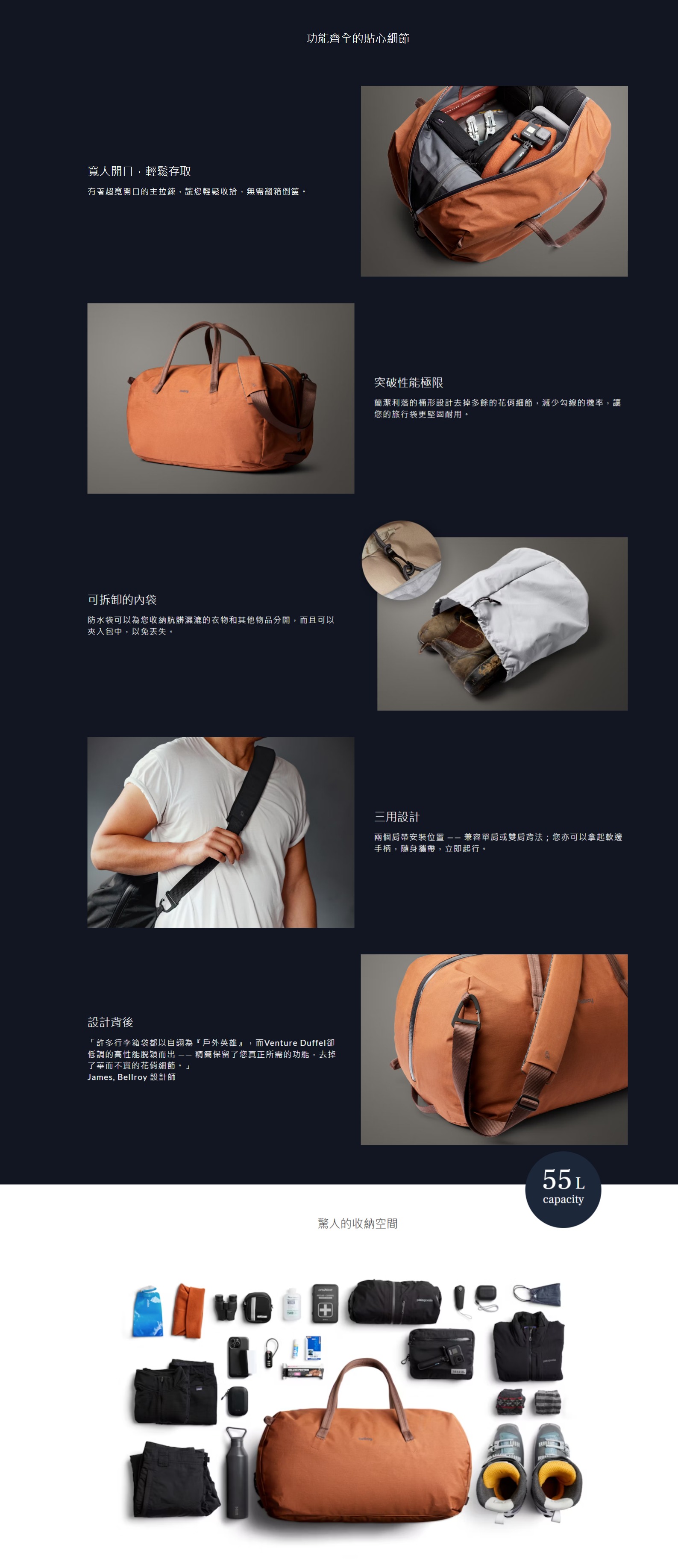 簡潔線條、低調性能與真正需要的功能 —— 這個堅固耐用的圓筒包讓您隨時準備就緒,整裝出發。
