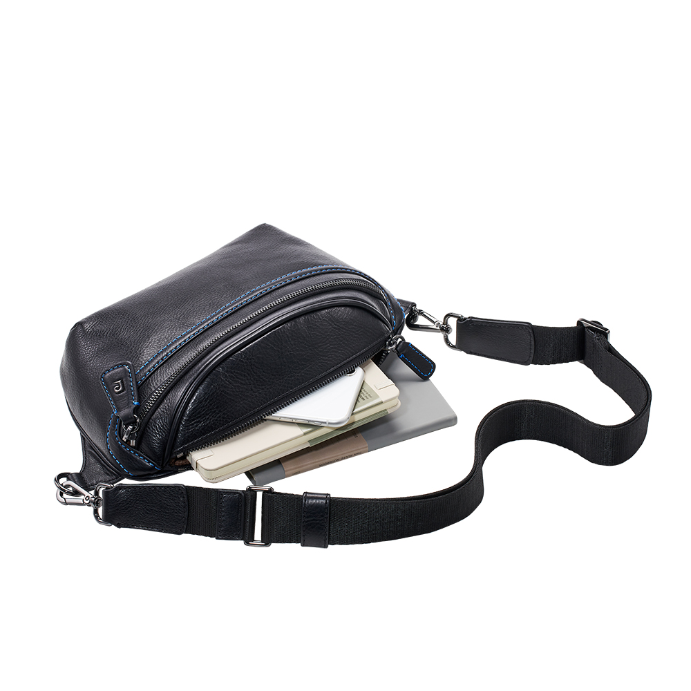 此包款支援容納iPad mini 8.3、iPhone 14 Pro Max、長夾等,內含RFID防磁波布,高科技防盜功能使用安心。