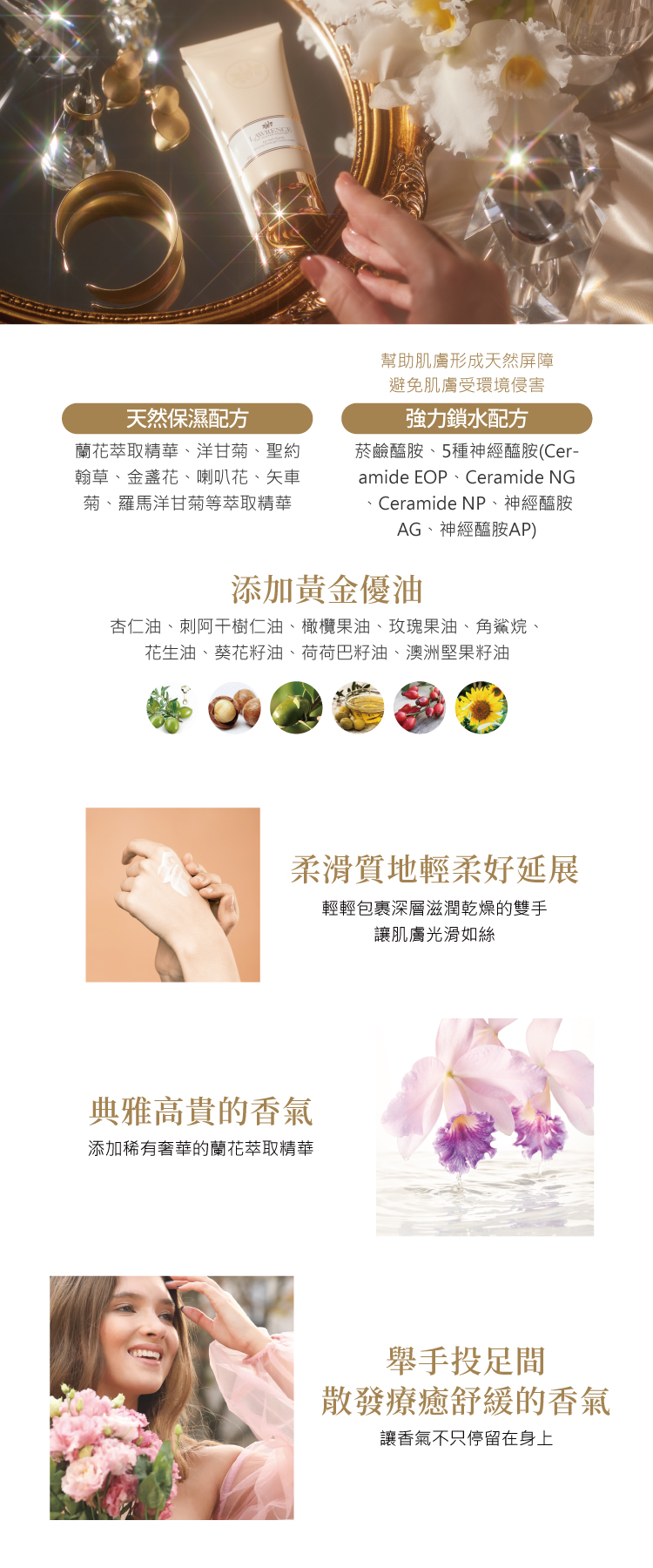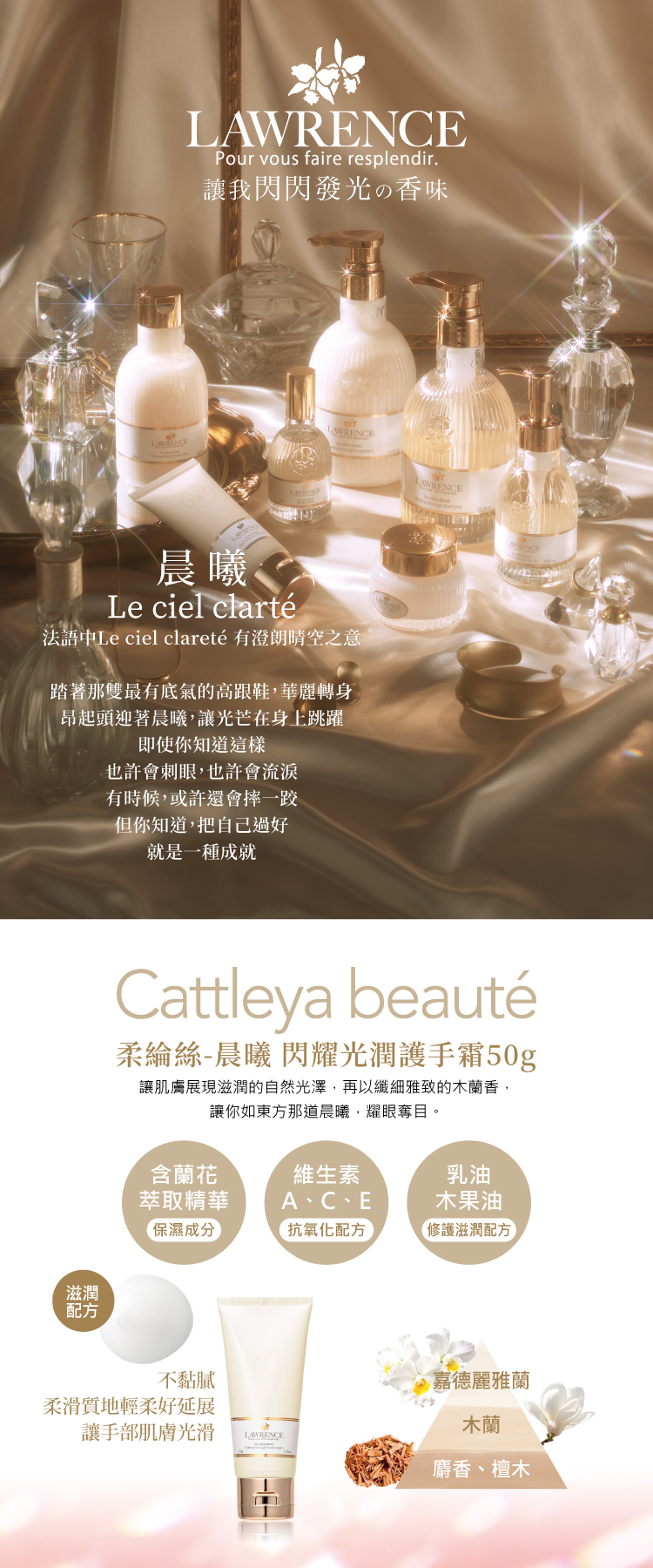 LAWRENCE 柔綸絲-晨曦 閃耀光潤護手霜50g x1◆香調TOP:嘉徳麗雅蘭MIDDLE:木蘭LAST:麝香、檀木