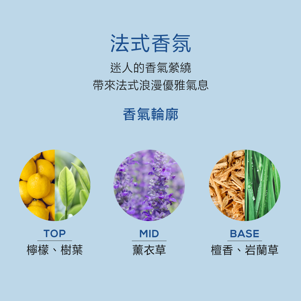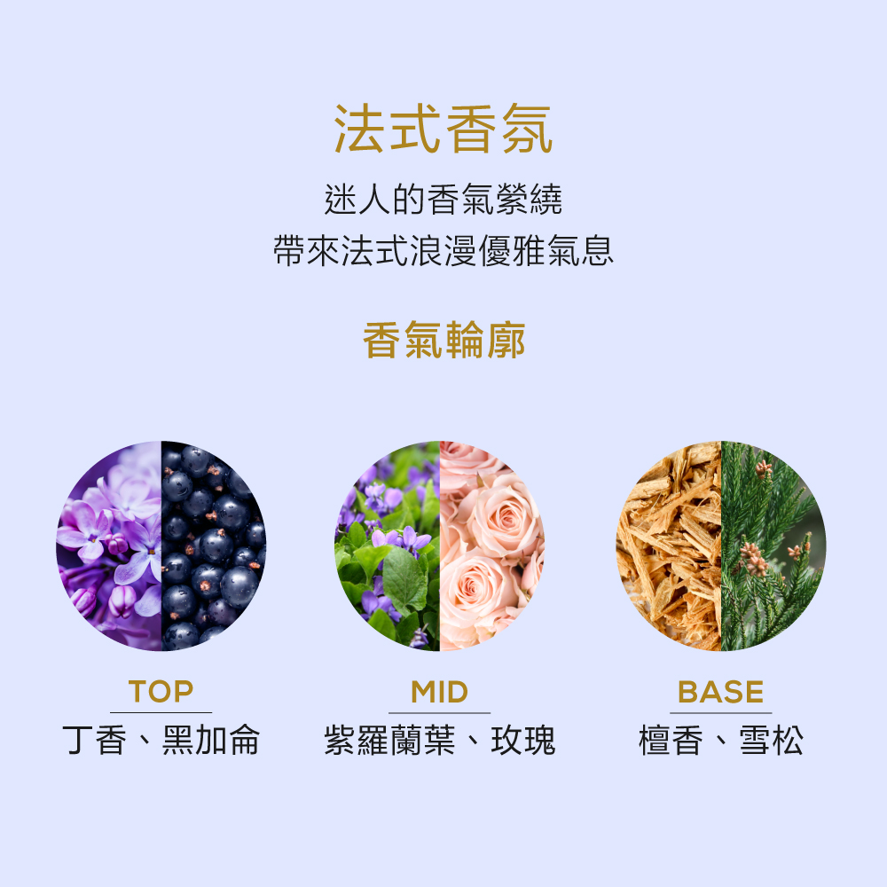 沉靜的檀香木香調,結合清新的岩蘭草以及薰衣草,內斂又不失質感的香氣,成為人們心之所嚮的高貴氣息