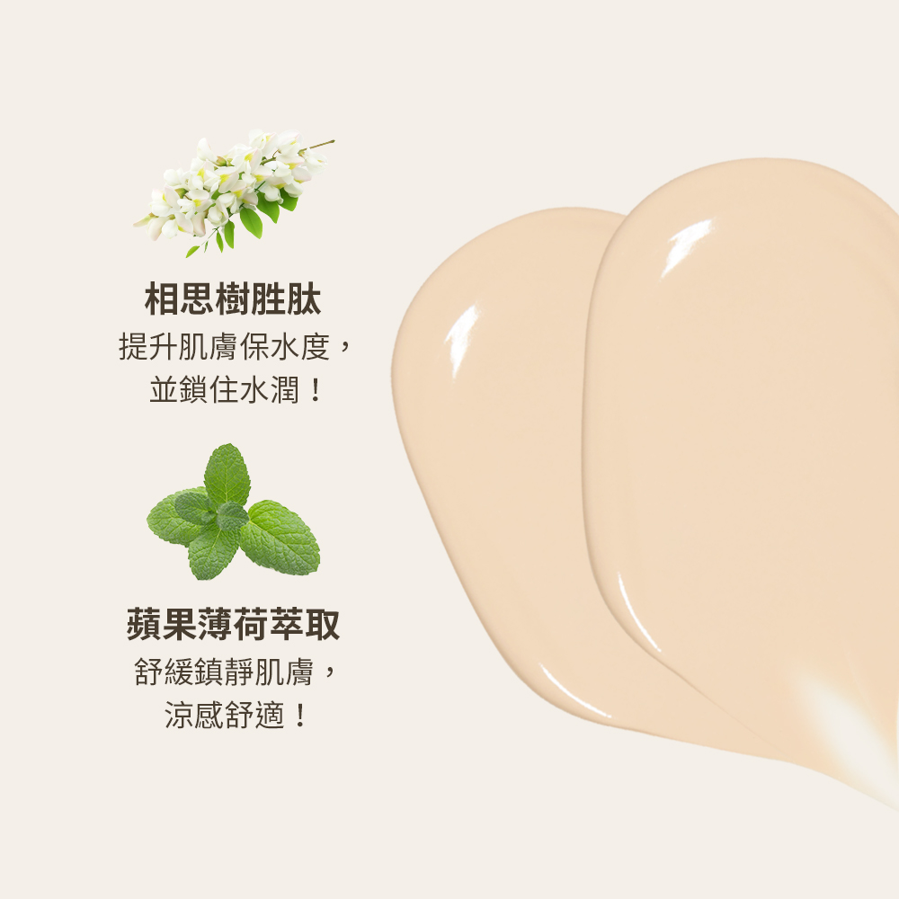 保濕鎖水-相思樹胜肽(Acacia Peptide) 、舒緩涼感-蘋果薄荷
