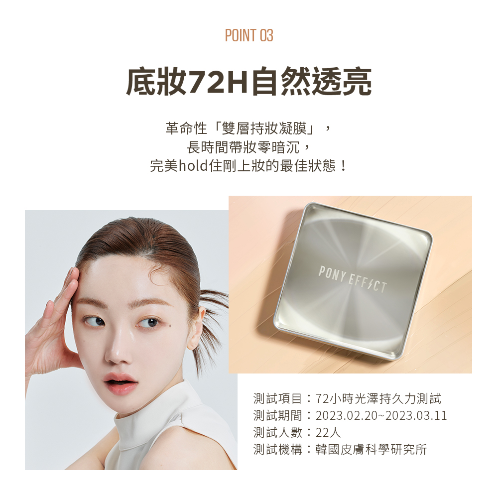 ◆品名 : PONY EFFECT 零暗沉柔霧持久水氣墊 (粉蕊15g*2)