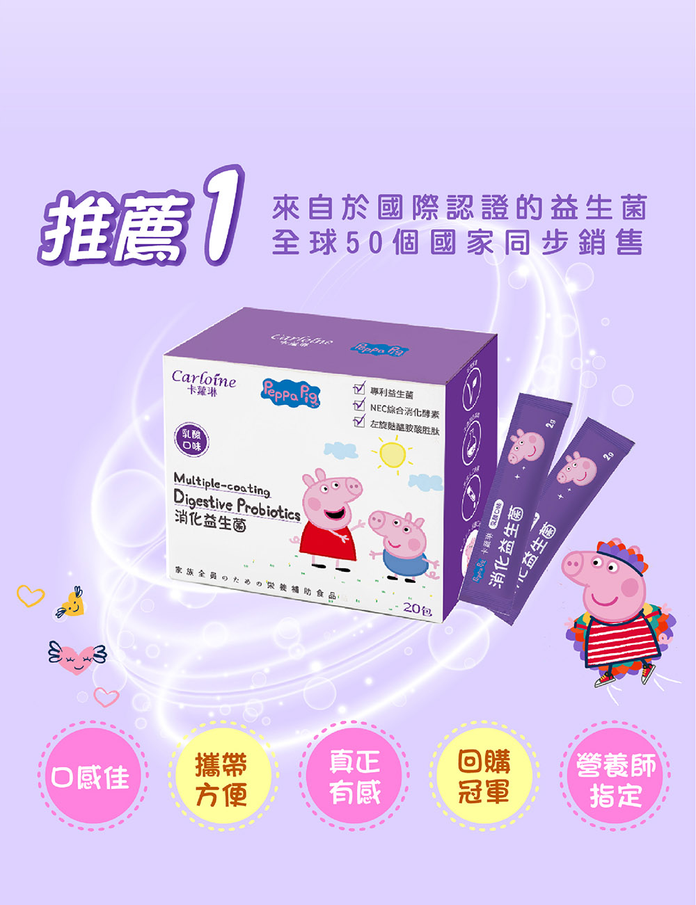 佩佩豬款【消化益生菌】 促進食慾益生菌 乳酸口味 (20包/盒)