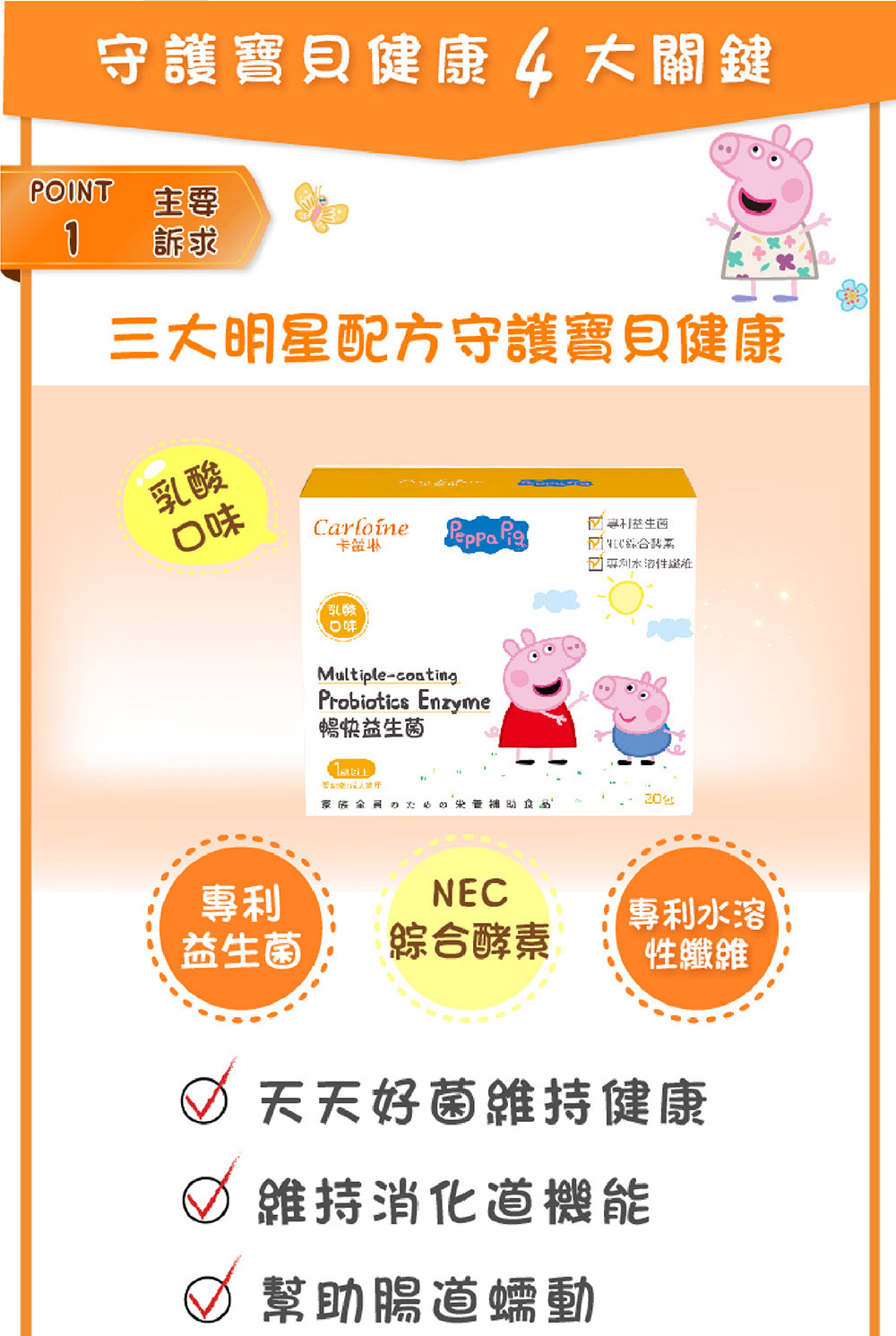 佩佩豬款【暢快1號益生菌】排便順暢 乳酸原味 (20包/盒)|12個月以下適用