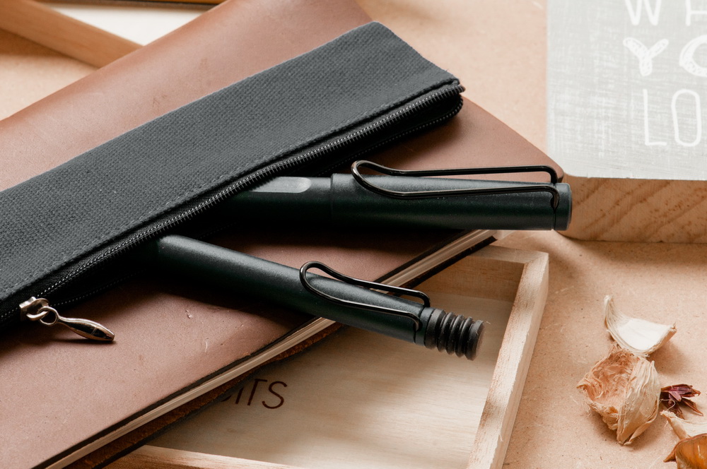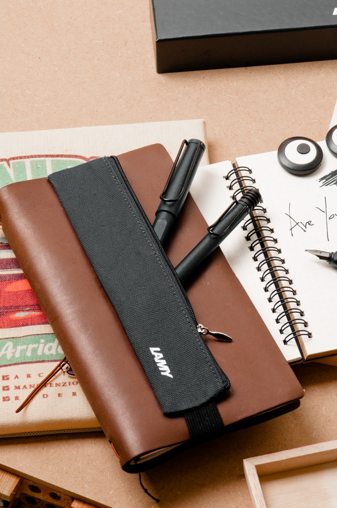 ■LAMY 經典 黑色 束帶A5筆袋 - 全球台灣獨家限定■備註 : 黑色束帶筆袋 ( 含拉鍊 )■束帶筆袋容量最大可裝入LAMY joy喜悅系列鋼筆*2支 / 建議裝一支鋼筆較為實用■束帶筆袋可綁束在手札記事本,束帶適用於A5手札本適用於A5尺寸145*210mm (含以上) ■黑色 - 經典中的經典色*備註:商品照片為示意之用-商品僅筆袋*