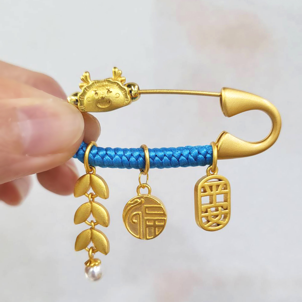 名稱:福龍迎祥 歲歲平安龍年別針 (彌月金飾 彌月禮 黃金999 安全別針)