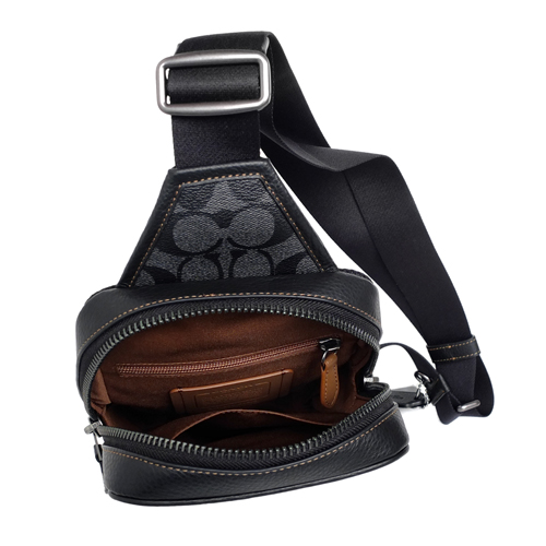 COACH男士多用休閒背包新款,以經典C Logo PVC搭配真皮側邊底部打造,包身採率性直式方型,內置一拉鍊袋及單格開口袋,可調式背帶搭配金屬扣夾及雙環提供多重背法,ㄇ型拉鍊開合物品易於拿取收納便利。