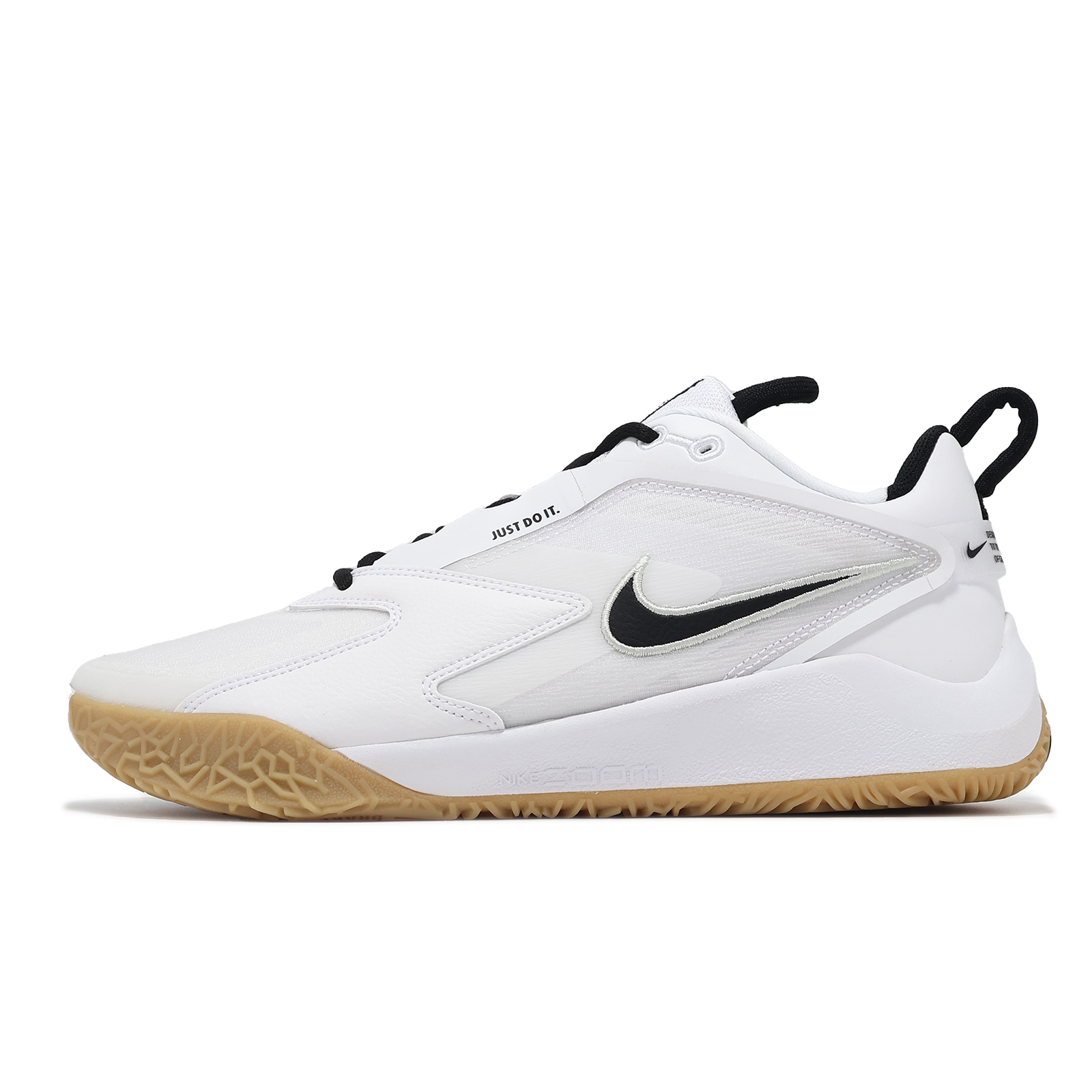 品牌: NIKE型號: FQ7074-101品名: Air Zoom HyperAce 3版型: 女鞋男段,男性選購大半號* 中底搭載 Zoom Air 緩震系統,在快速彈跳過程中能有效將地面給予雙足的衝擊力反饋為運動表現。
