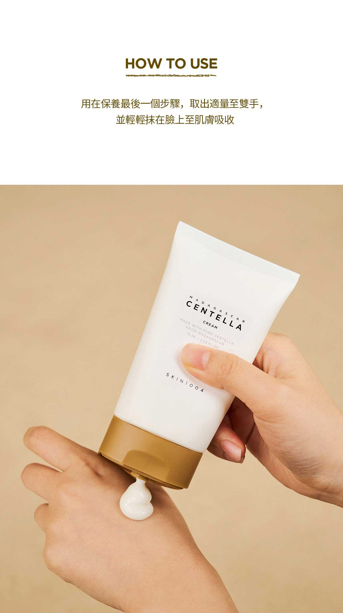 3.輕輕將乳霜塗抹在皮膚上