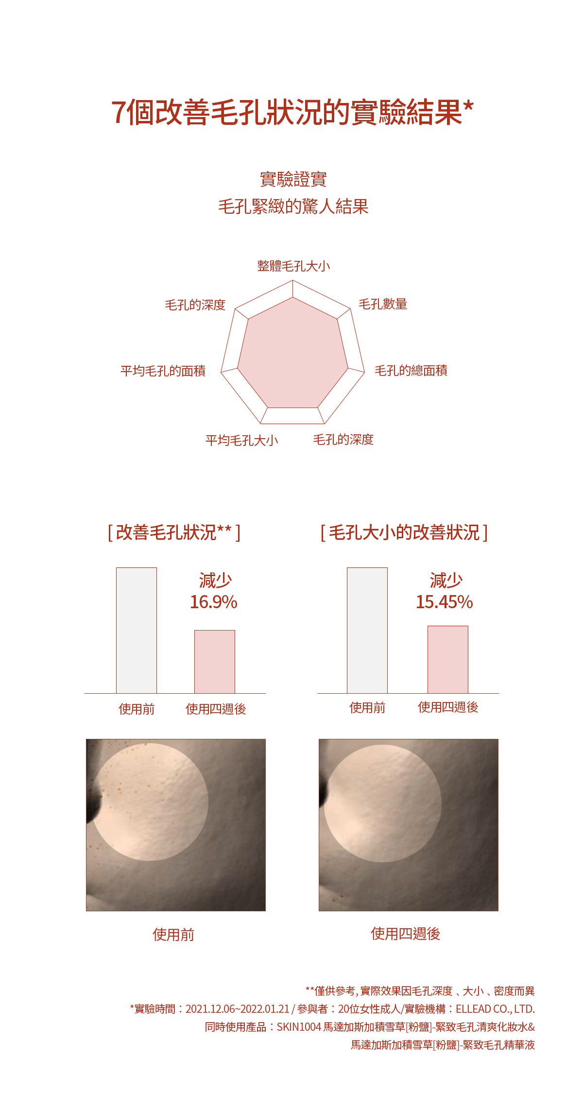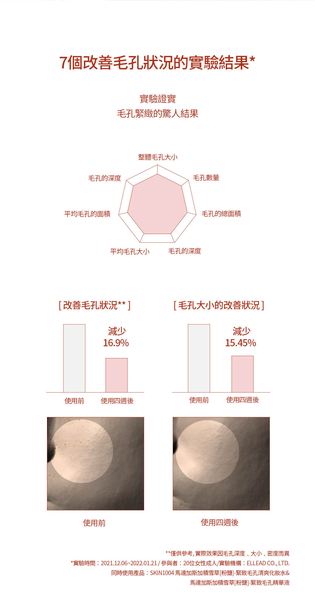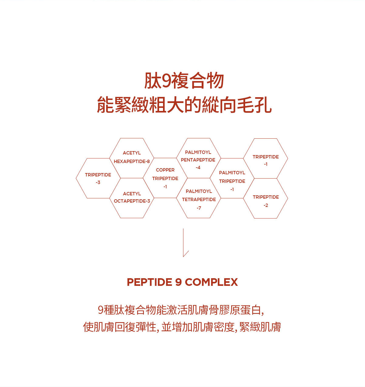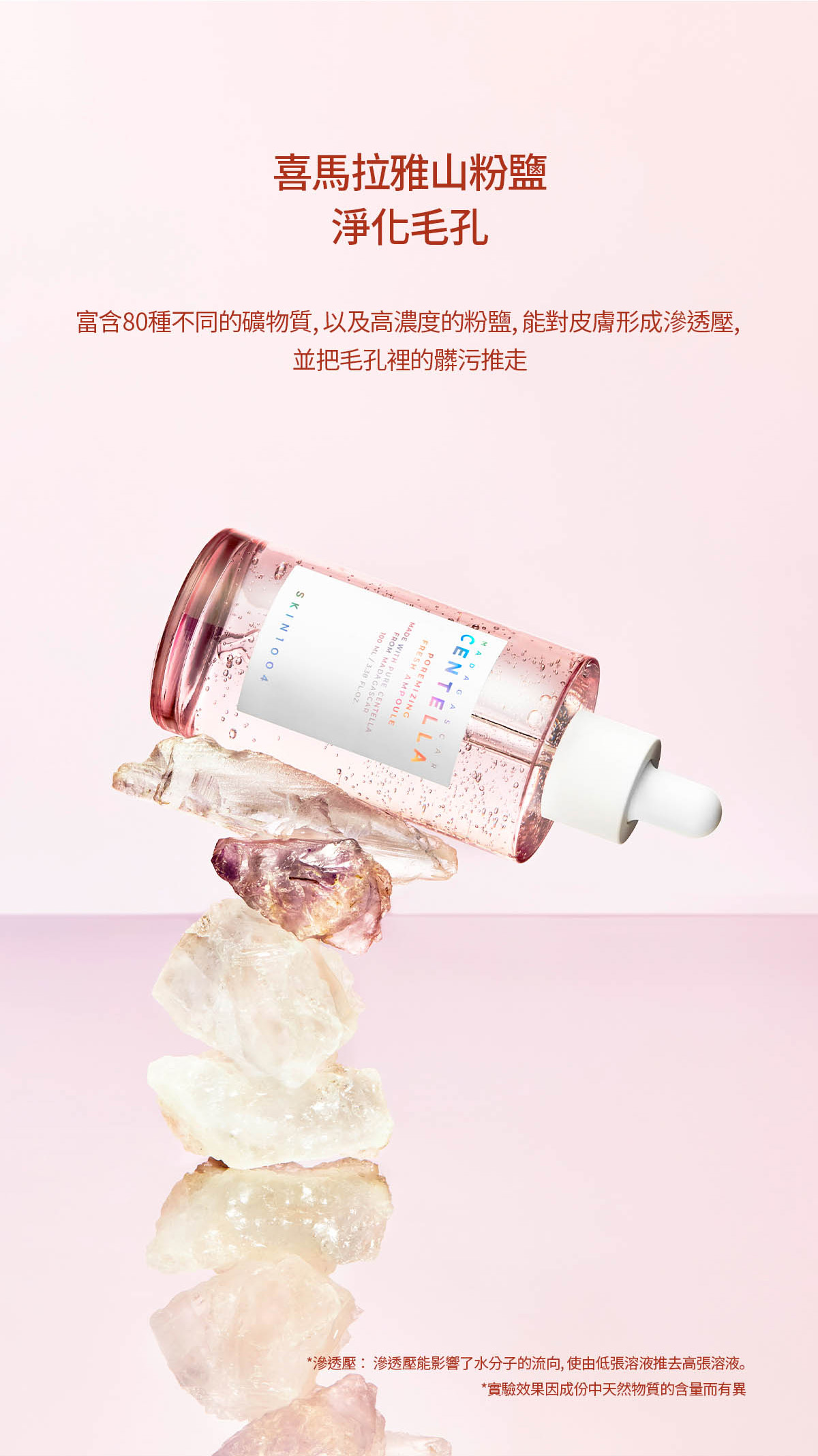 - 粉色鹽+肽9複合物相遇,呵護因皮脂過多引起的橫向毛孔和因皮膚彈性下降引起的縱向毛孔