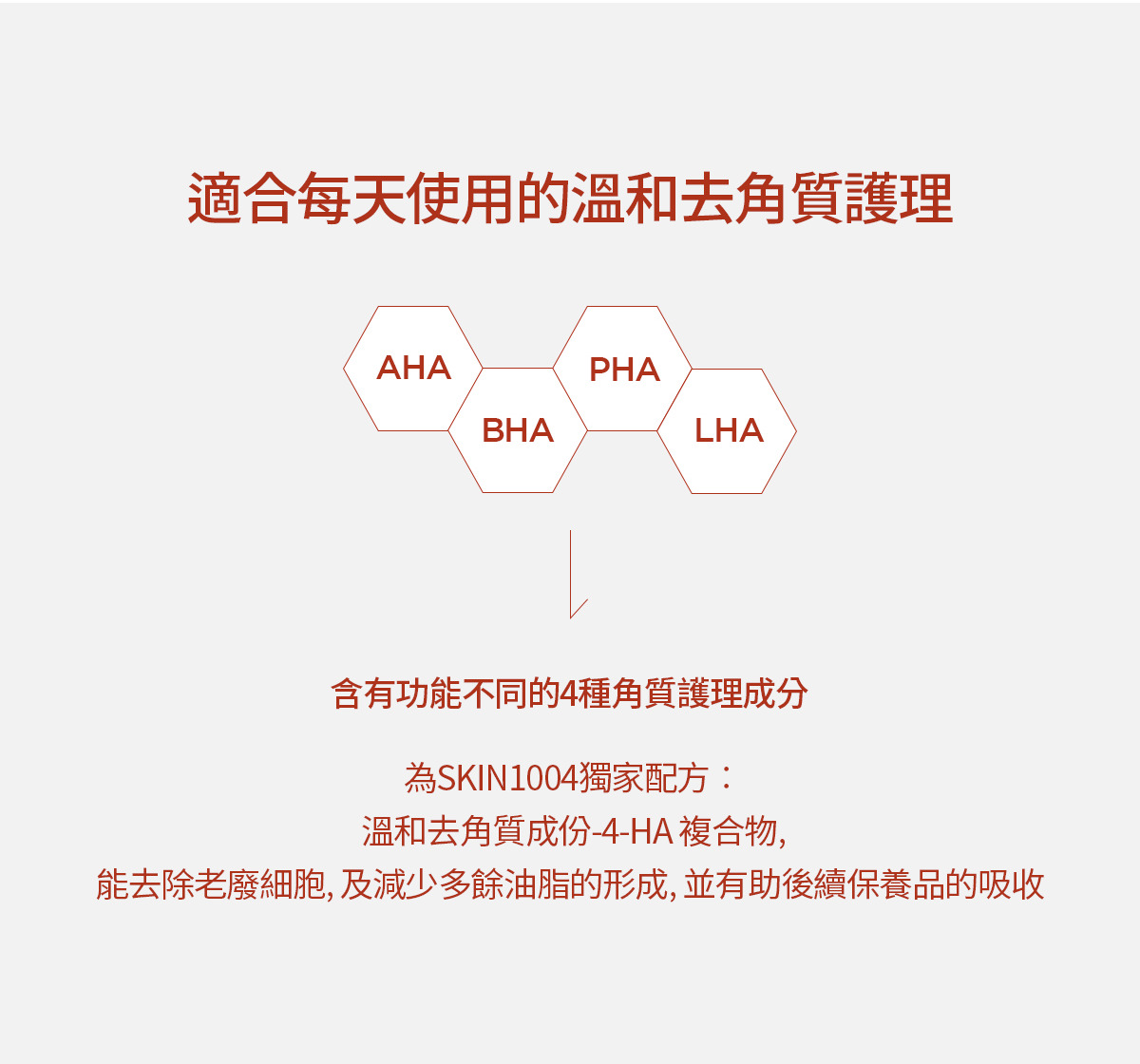 -含有功能不同的4種角質護理成分(AHA、BHA、PHA、LHA)