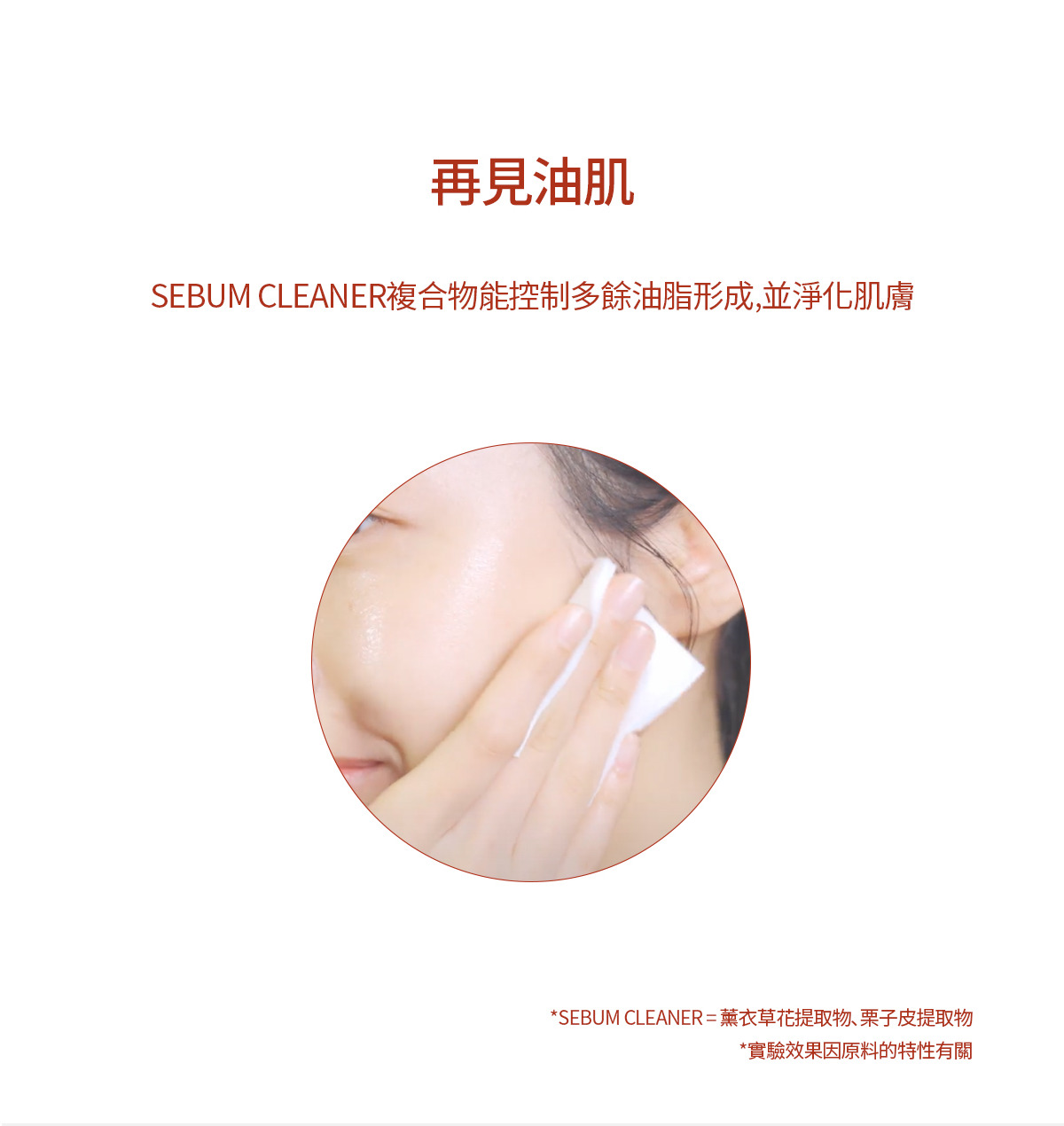 -粉色鹽的淨化作用與Sebum Cleaner複合物相結合,吸附肌膚代謝物及毛孔中的皮脂,擦拭肌膚