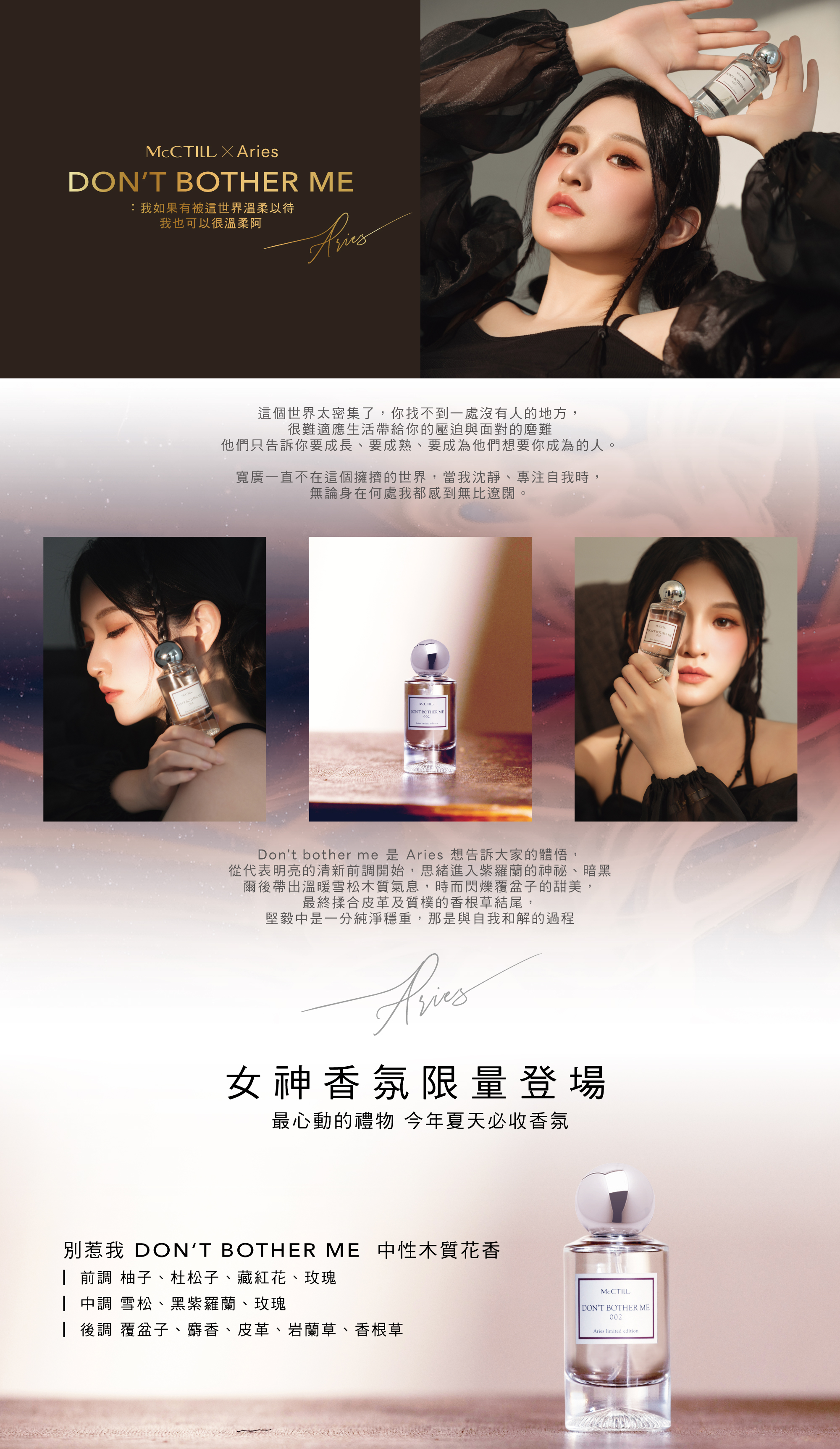 Don'y bother me. 別惹我 中性木質花香前調 柚子、杜松子、藏紅花、玫瑰中調 雪松、黑紫羅蘭、玫瑰後調 覆盆子、麝香、皮革、岩蘭草、香根草