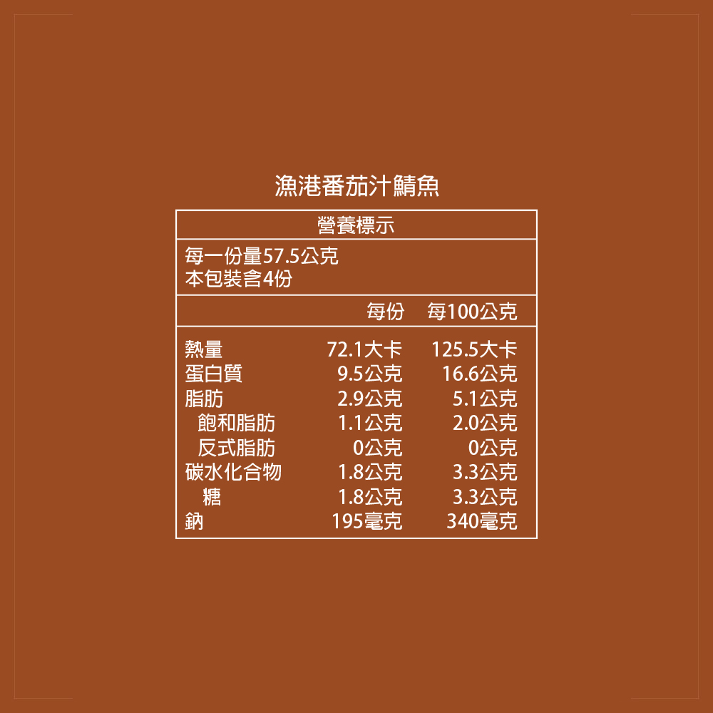 漁港蕃茄汁鯖魚:鯖魚、水、番茄糊、糖、鹽