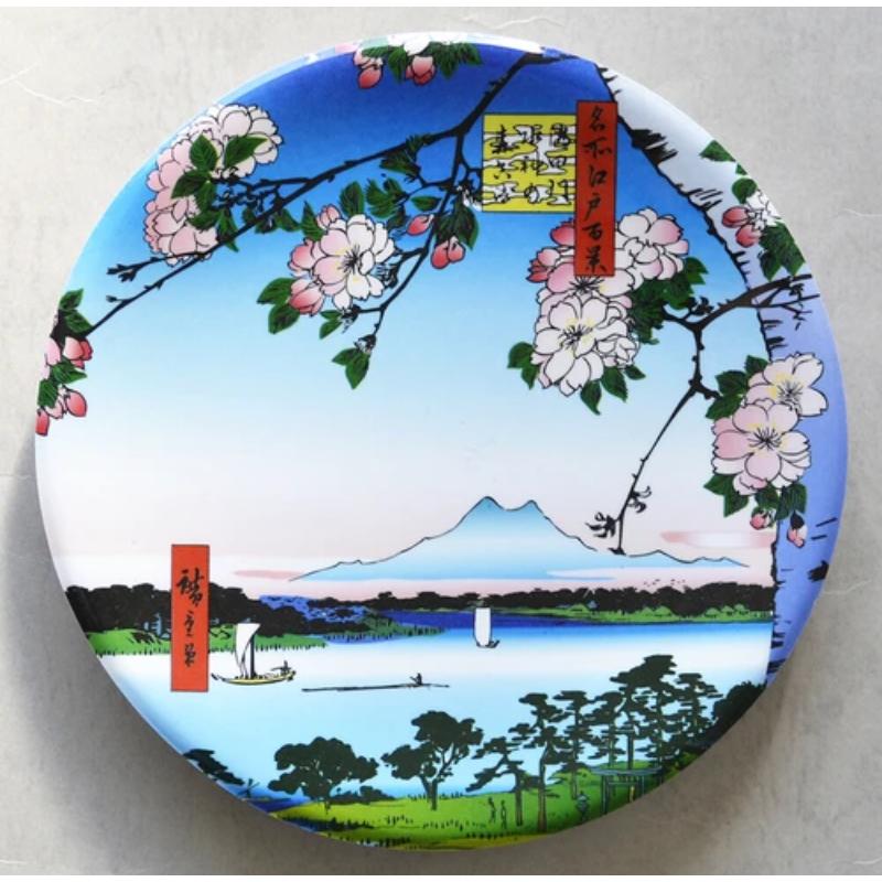 以日本浮世繪為主題的和風壽司皿系列,此款設計元素來自於歌川廣重的知名畫作「名所江戶百景-隅田川水神之森真崎」,該系列旨在將日本藝術帶進日常生活,不僅是一個實用的餐具,更是一件藝術品,讓您在品嚐美味的同時,也能欣賞到日本傳統文化的美麗.隨盒附贈簡易紙製支架,讓你可以輕鬆當作擺飾,擺放在任何你喜歡的地點.塑膠材質,直徑約為15CM