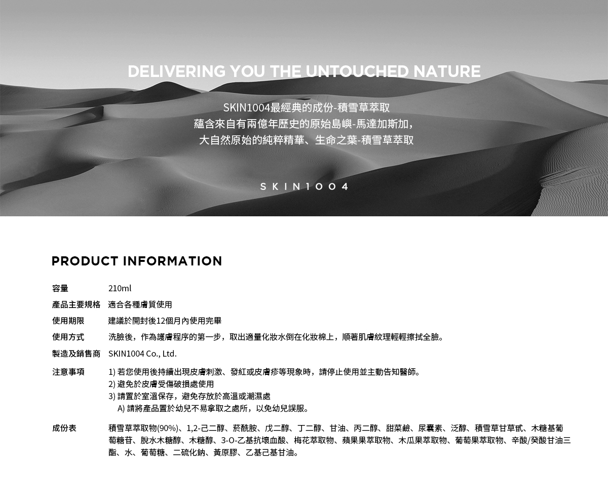 品名:SKIN1004理膚天使 馬達加斯加積雪草[美白]-活膚水210ml