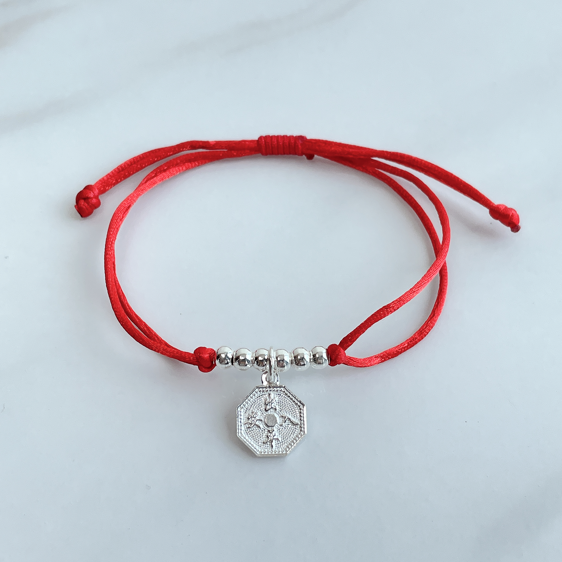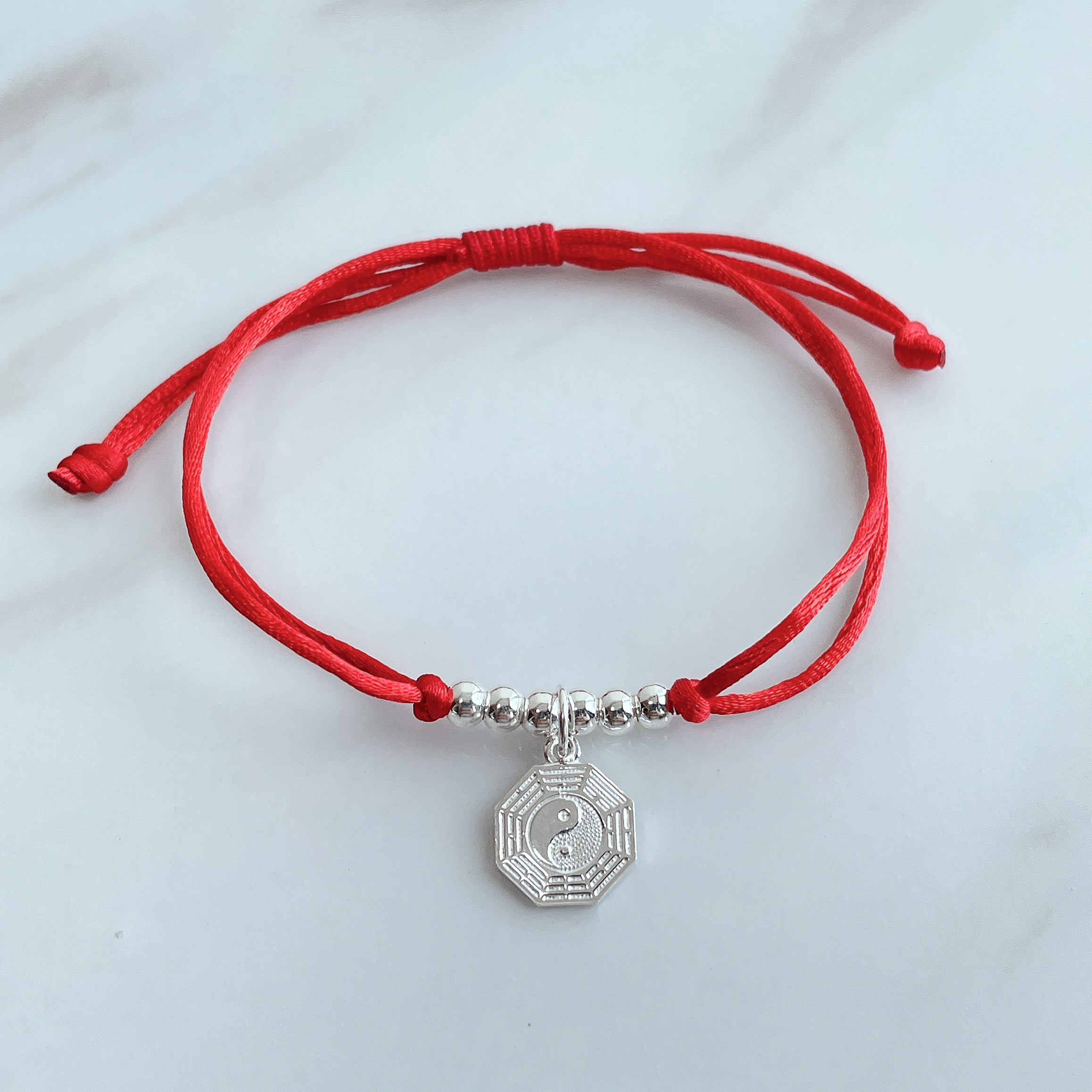 品名:八卦轉運珠足銀紅繩手鍊
