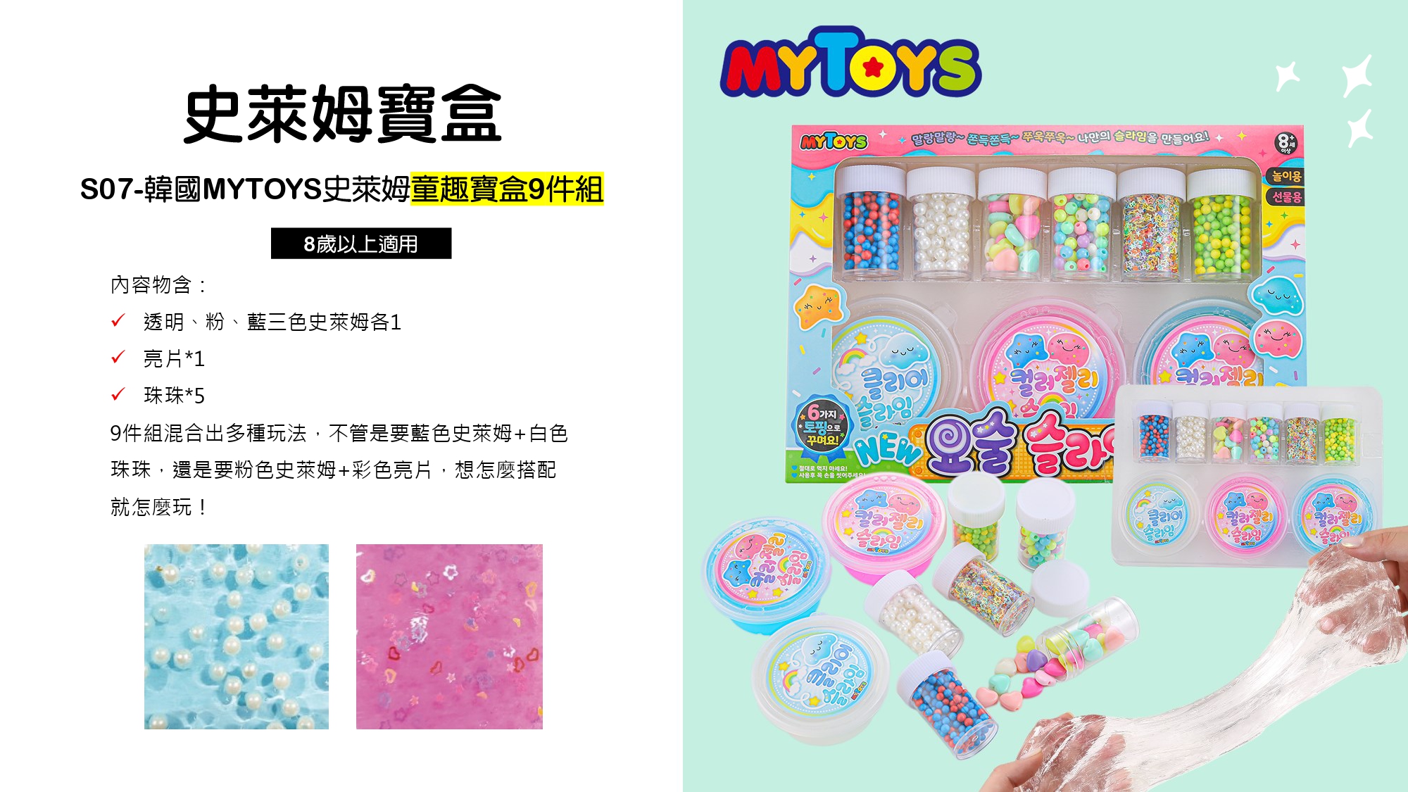 ●內容物包含:史萊姆x3/亮片x1/珠珠x5