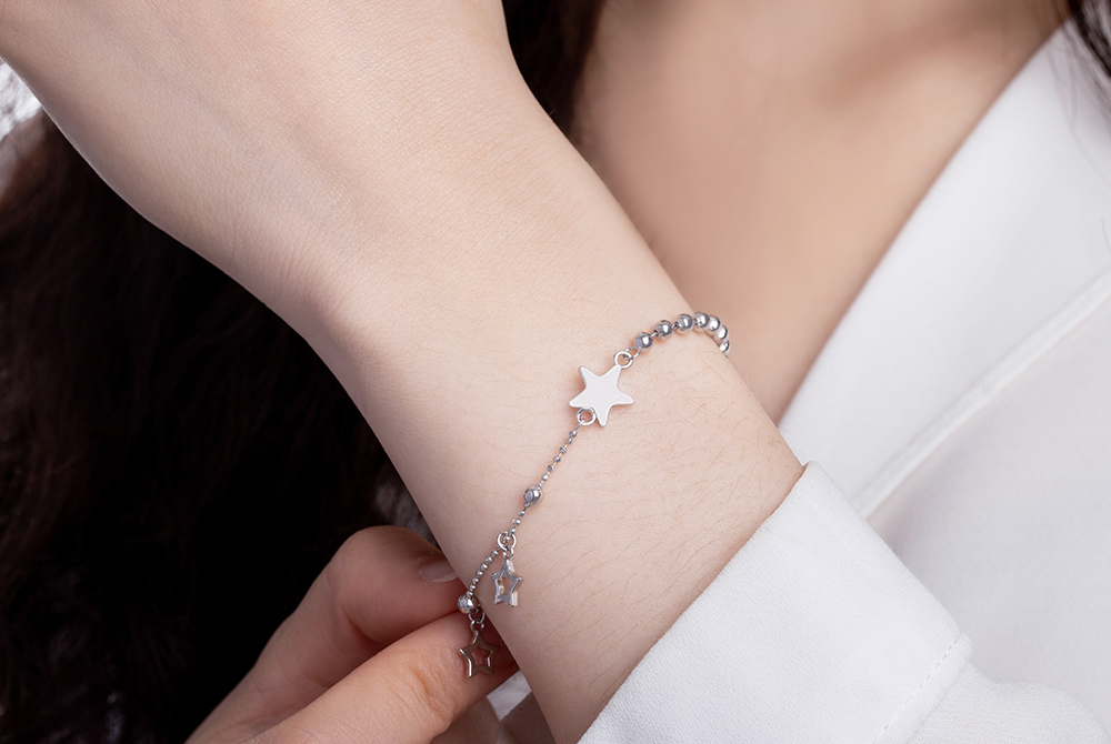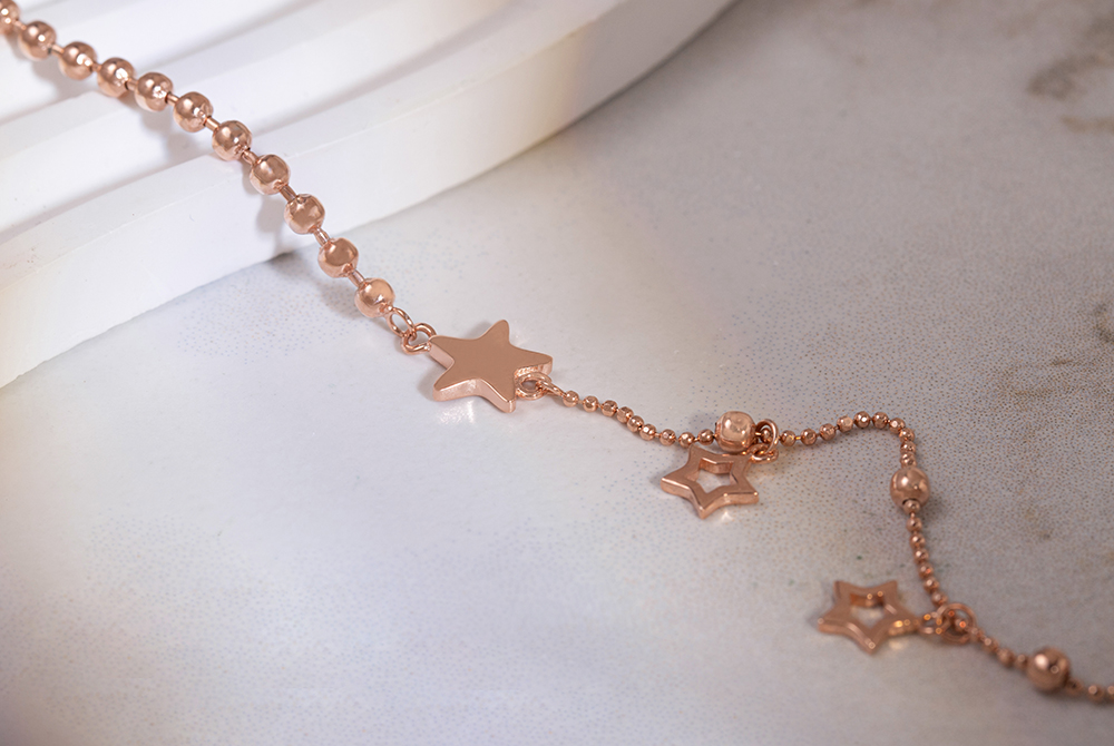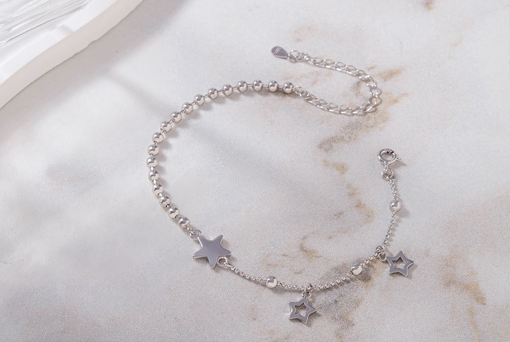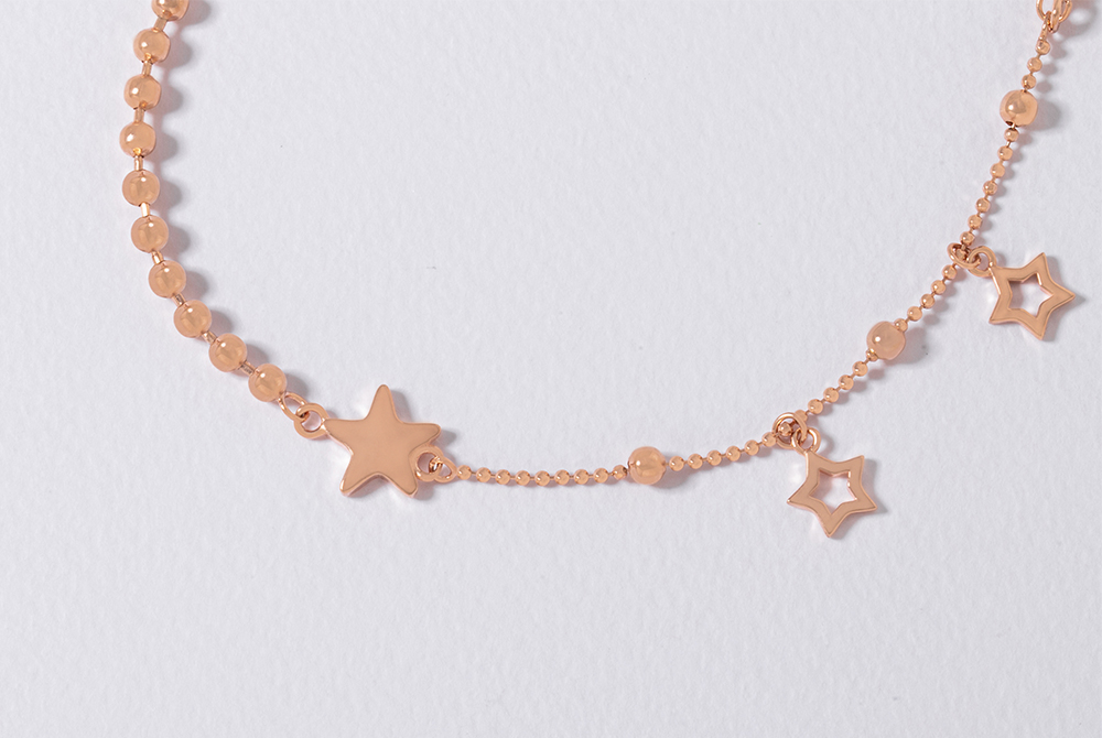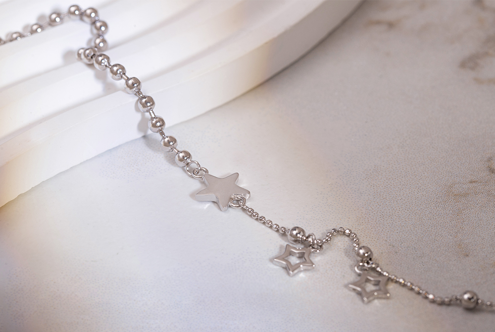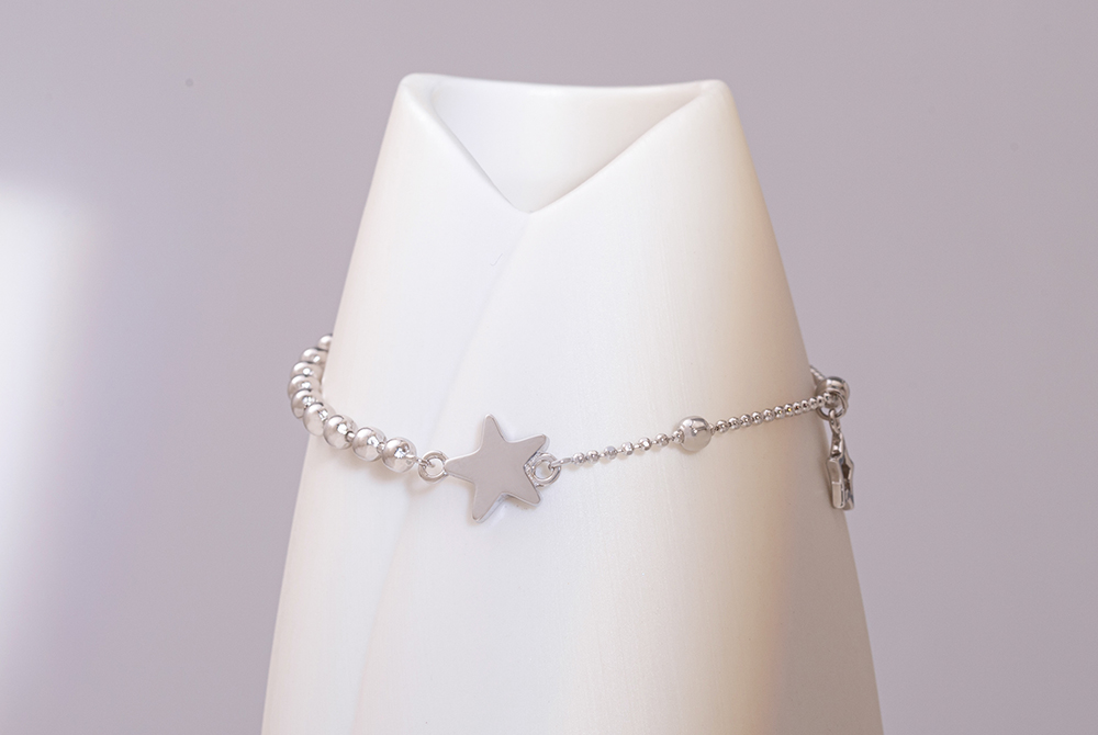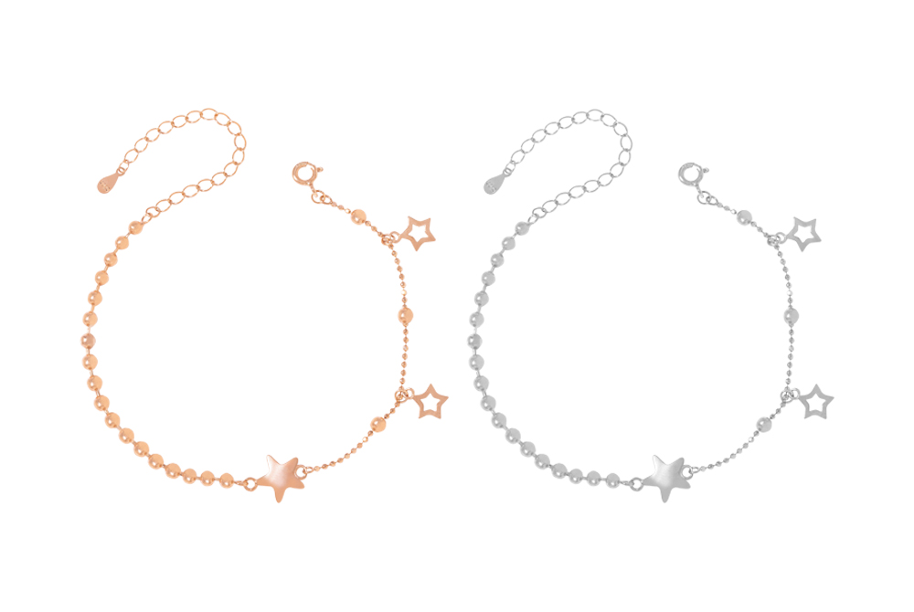 一顆顆星星互相串聯,亮麗動人,不對稱的手鍊設計,讓你成為最獨特的存在。