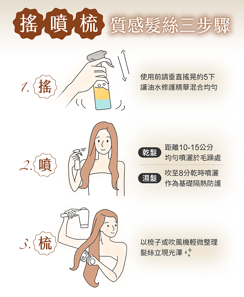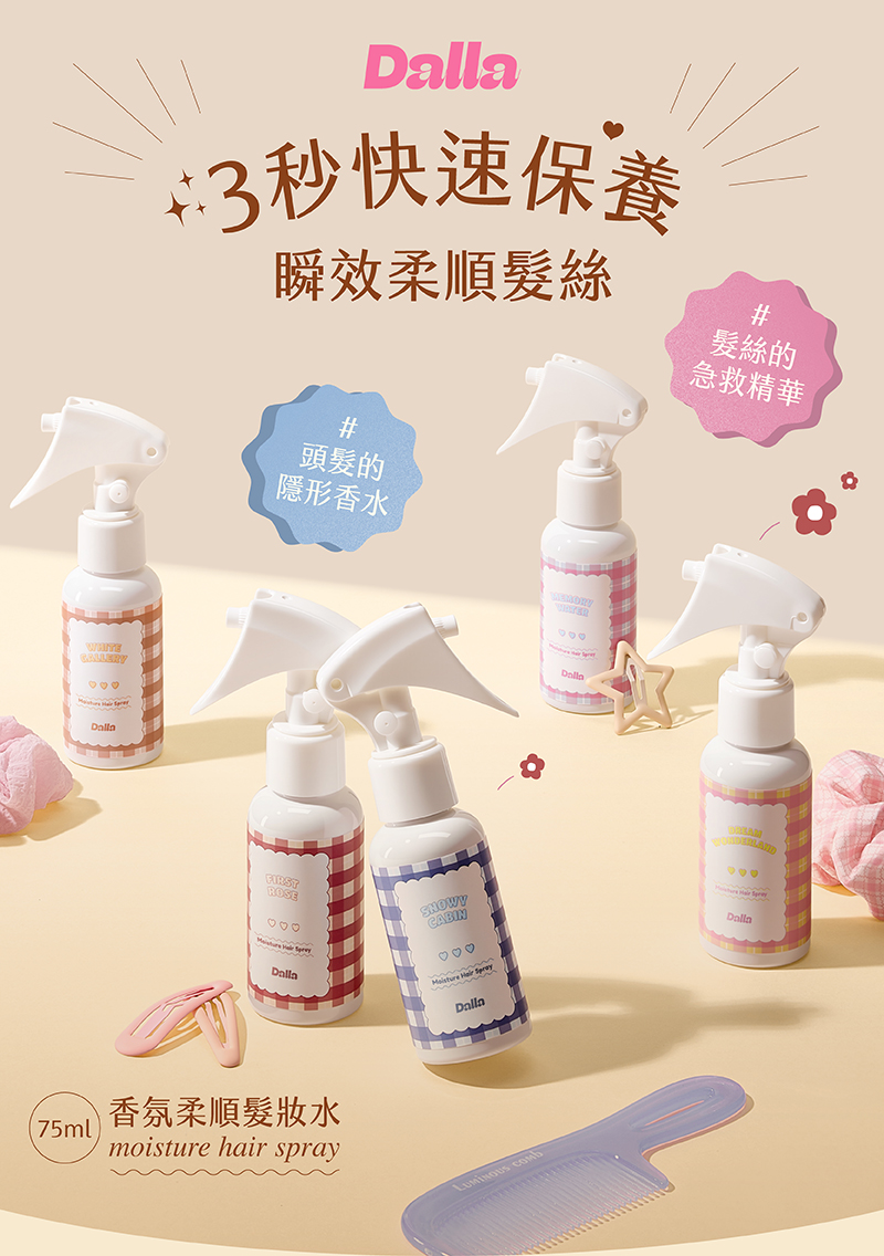 材質:塑膠、液體功能:噴拭於髮尾,撫平毛燥,增添香氣、創造美好心情。容量:75ml±10%