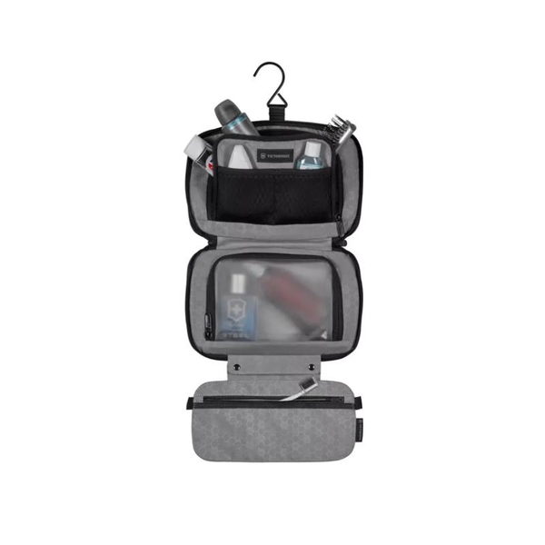 三摺洗漱袋附掛鉤全拉鍊洗漱袋讓您可整齊分類您的洗浴用品,而且僅佔用行李的極少空間。寬敞的隔層及多個口袋提供足夠的空間收納各項物品,三摺設計則可保持外型精巧、時尚。抵達目的地後,只須拉開拉鏈、打開洗漱袋,就可整裝待發。