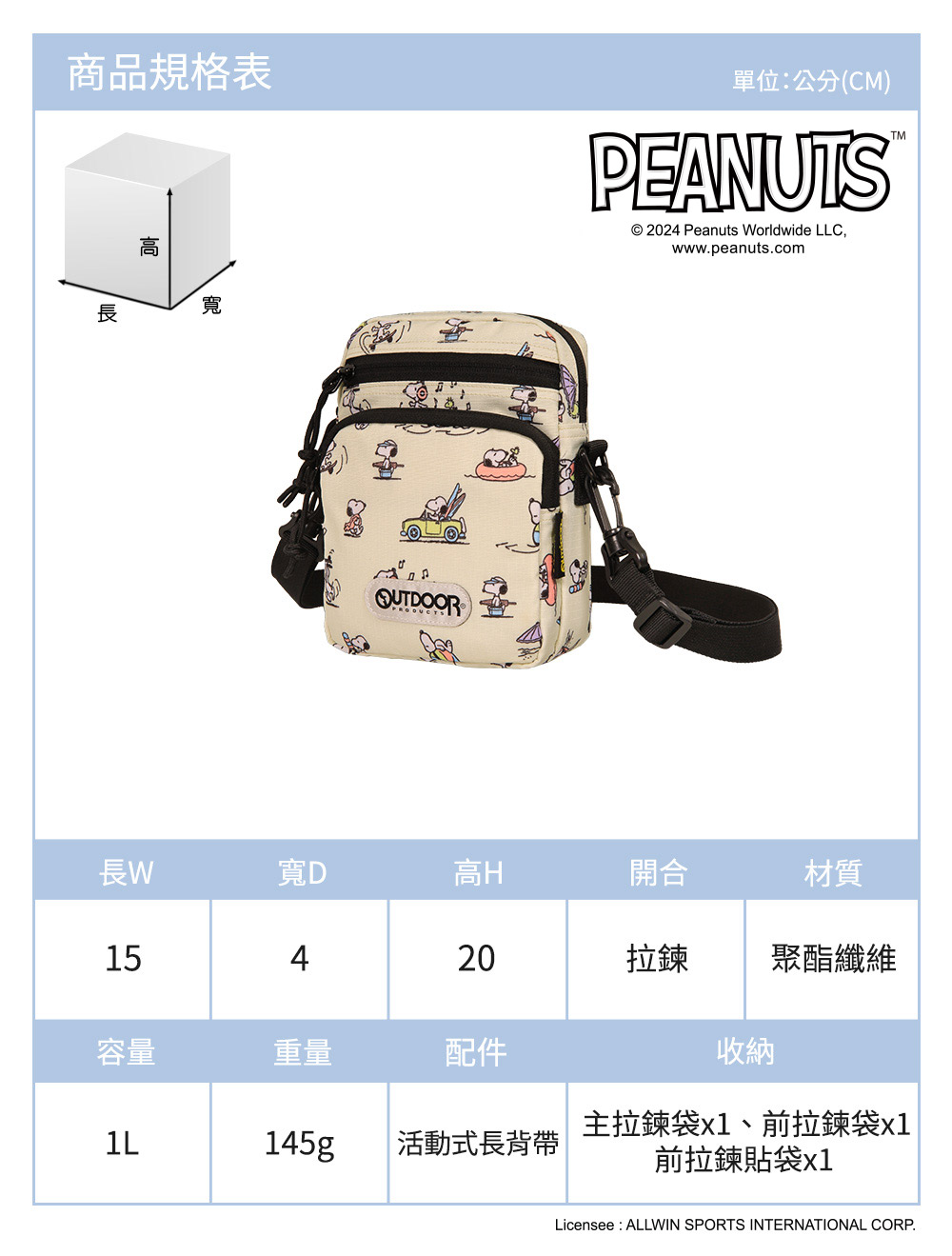 【OUTDOOR】史努比SNOOPY-海灘直式側背包-米白色 | NearMe | 線上送禮平台『獨家支援 收禮者改選禮物』