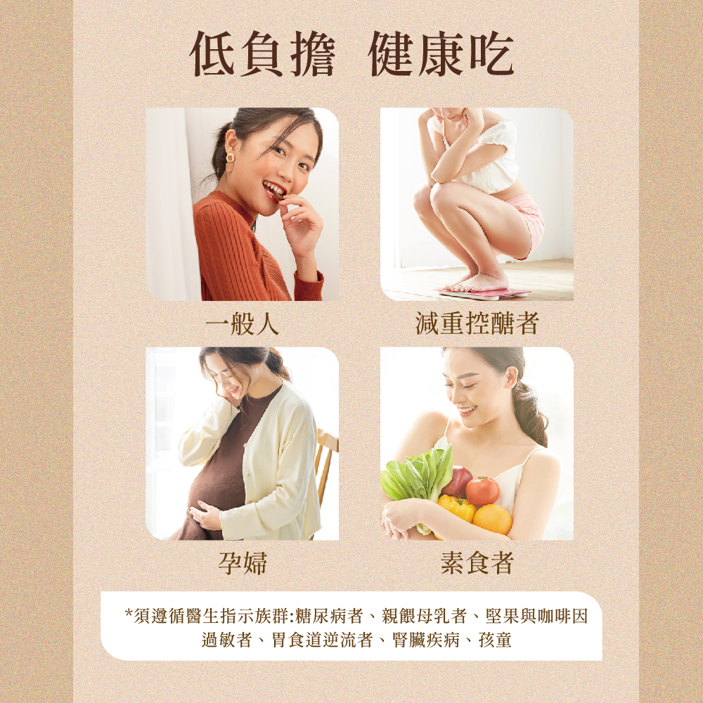 我們微糖配方使用低GI的椰糖,讓人體吸收無負擔,餐前食用更可以增加飽足感,降低食慾