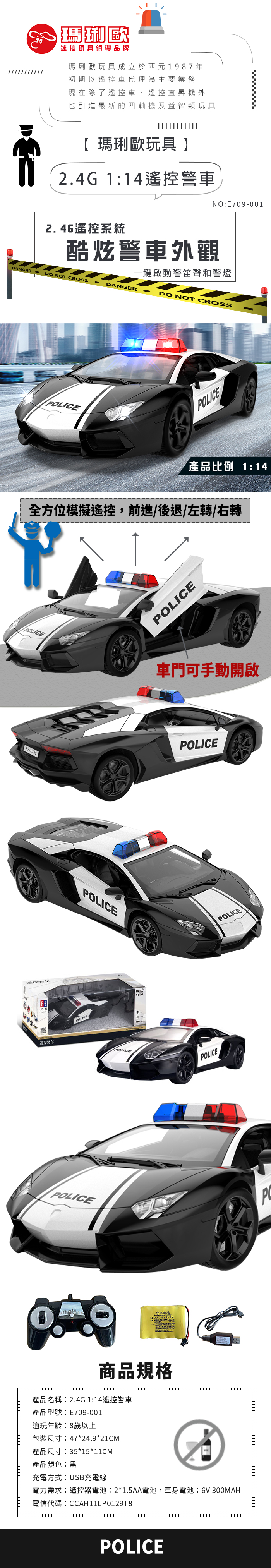 【瑪琍歐玩具】2.4G 1:14遙控警車/E709-001 | NearMe | 線上送禮平台『獨家支援 收禮者改選禮物』