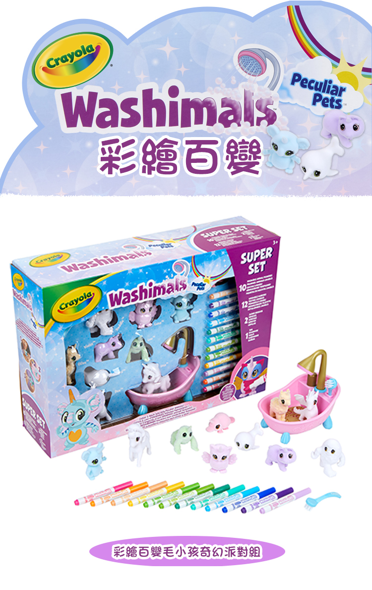 【美國繪兒樂Crayola】彩繪百變毛小孩超豪華派對組|兒童禮物首選|彩繪 浴缸噴水洗澡 再彩繪 多次遊戲