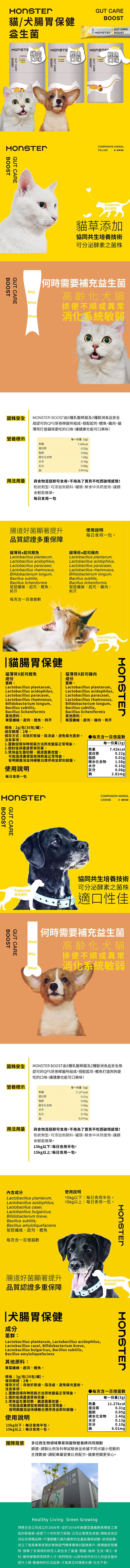 名稱:【MONSTER BOOST】犬貓腸胃保健益生菌-鰹魚口味/雞肉口味 30包/罐