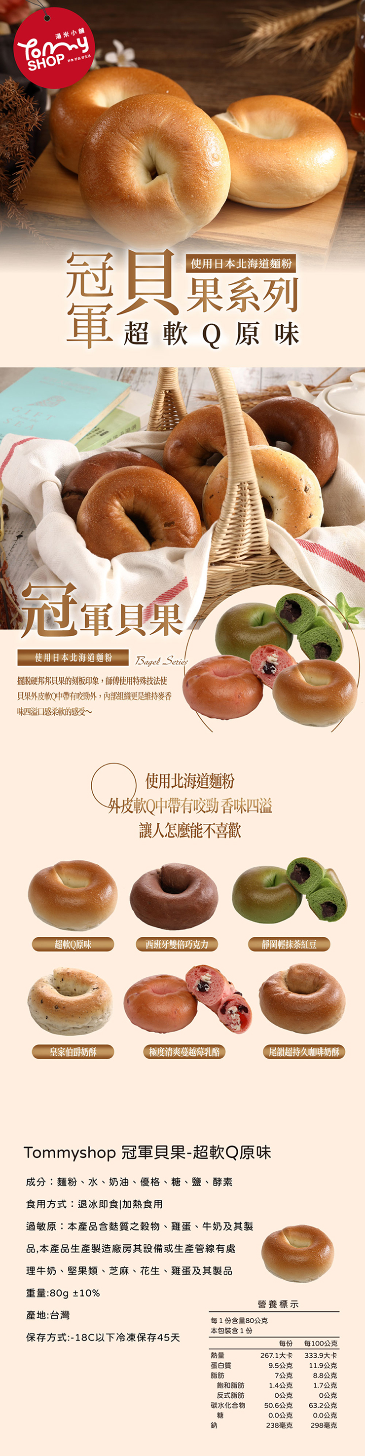 名稱:【Tommyshop】冠軍貝果-超軟Q原味x10入(80g/入)