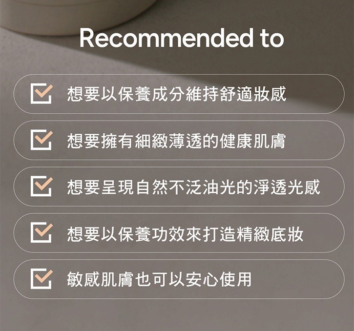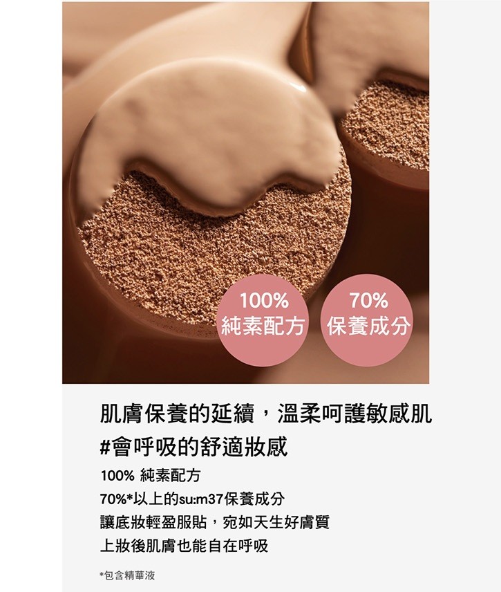 .100%純素配方 + 70%保養成分,上妝後的肌膚也能舒適呼吸