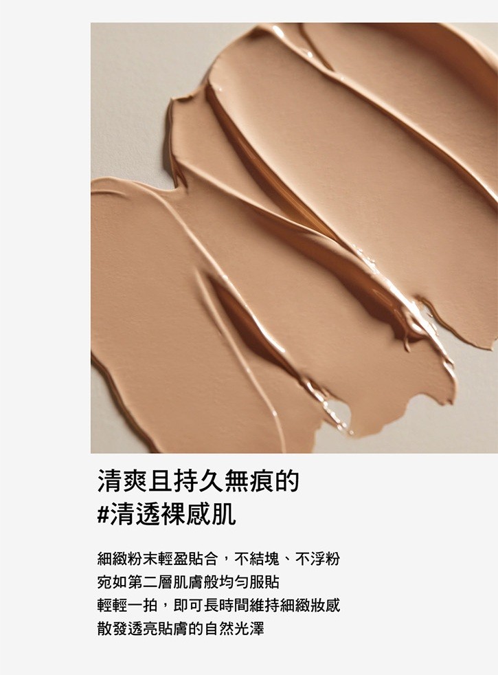 .輕盈細緻質地均勻服貼,綻放自然透亮光澤,打造精緻妝感