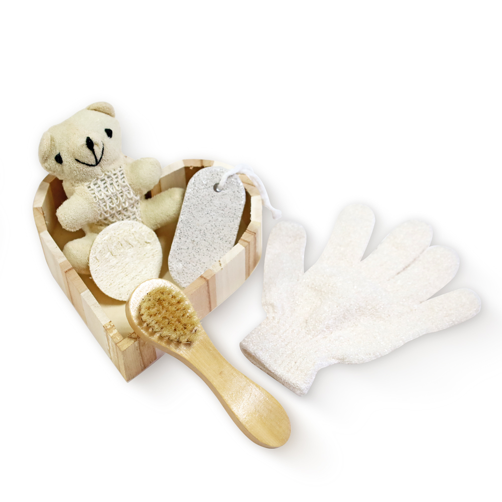 材質:沐浴洗澡用品禮盒禮盒:木頭毛巾熊:珊瑚絨布洗澡海綿:毛巾布+海綿 角質刷:木頭+豬鬢毛磨腳石:浮石沐浴洗澡用品禮盒-愛心禮盒:木頭小熊:毛巾布+海綿角質刷:木頭+豬鬢毛磨腳石:浮石沐浴絲瓜布:絲瓜搓澡手套:尼龍沐浴洗澡用品禮盒