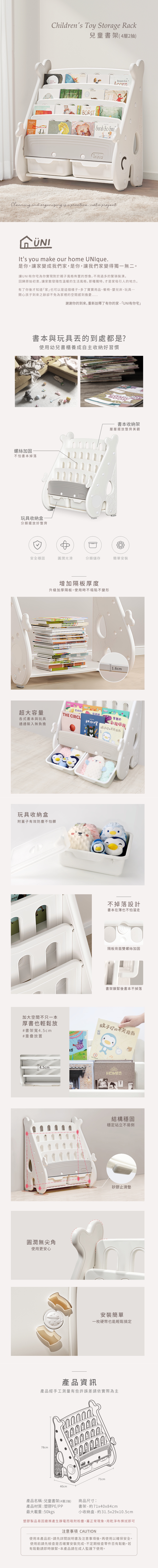 商品品名:「UNI有你宅」兒童書本收納層架商品型號:P70173-099