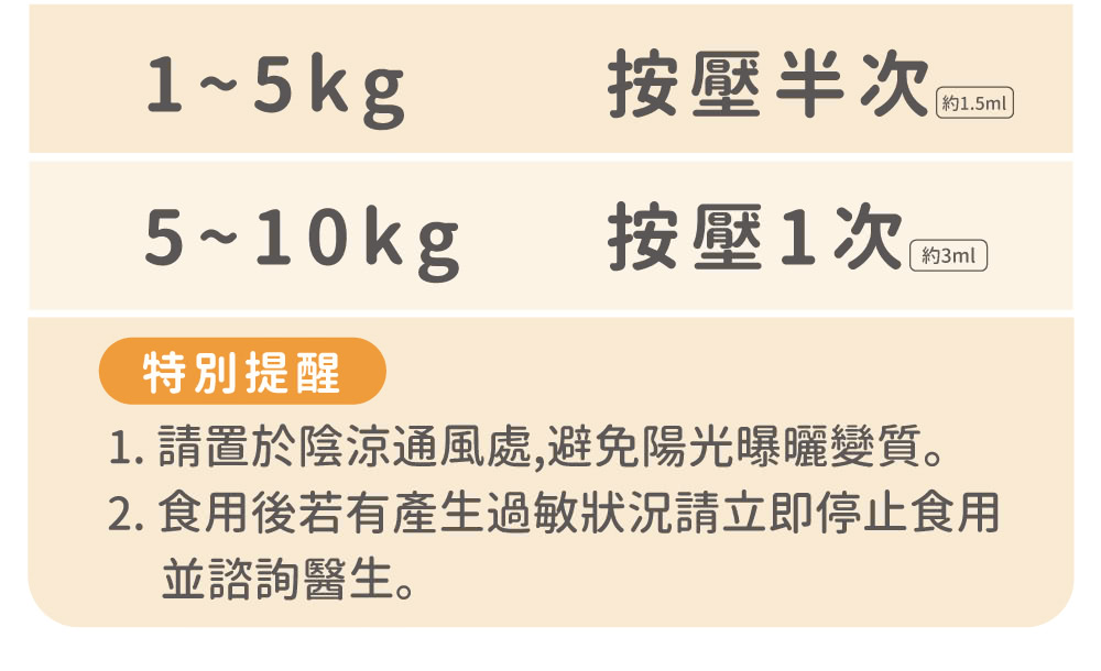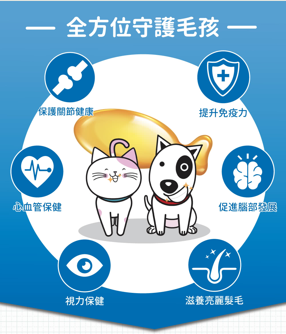 ★ 維生素A:幫助維持視力、皮膚和毛髮的健康,牙齒和骨骼的發展★ 維生素D:對骨骼的形成與肌肉、神經的健康發展★ EPA&DHA: (1) 保持皮膚及毛髮的健康,減少掉毛機率發生 (2) 提升免疫力 (3) 促進關節健康★ 食用注意:開封後請放陰涼處保存,勿讓太陽直射即可
