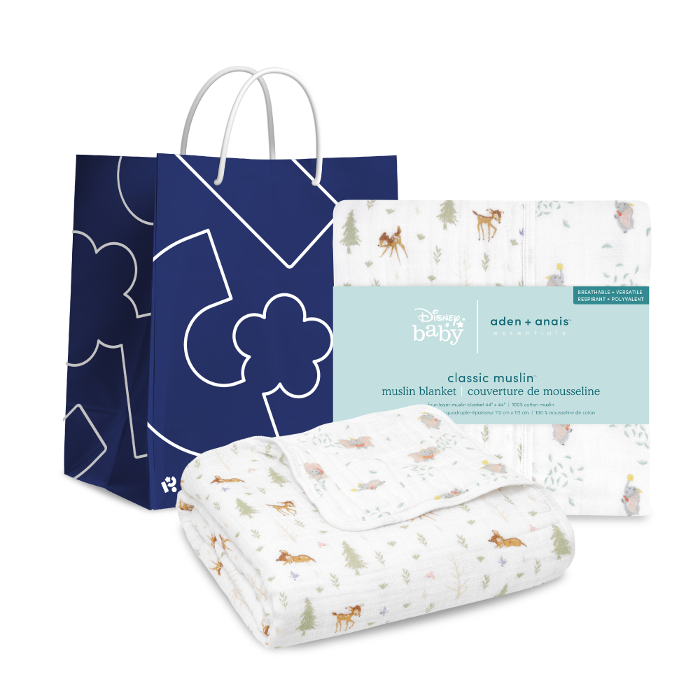 ●簡單清新造型,以迪士尼夥伴為主題,設計出可愛又夢幻的小鹿斑比及小飛象,吸睛又可愛。●採用Muslin 100%細紗布棉,運用開放的稀鬆編織法,減少嬰兒過熱窒息的風險。●Muslin 棉為一種耐用的材質,能夠承受手洗及機洗清理,並隨著使用時間增長而變得更柔軟。●Muslin棉細緻、柔軟耐用且延展性佳,可以帶給寶貝安撫的效果,感受在媽媽懷抱中舒適的安心感。●厚毯比起包巾更適合涼爽的秋冬,不僅能當哺乳巾,也能在外出時作為嬰兒蓋毯以及推車的遮陽巾,更能做為睡床的床單,居家外出皆合適,多種用途超方便。